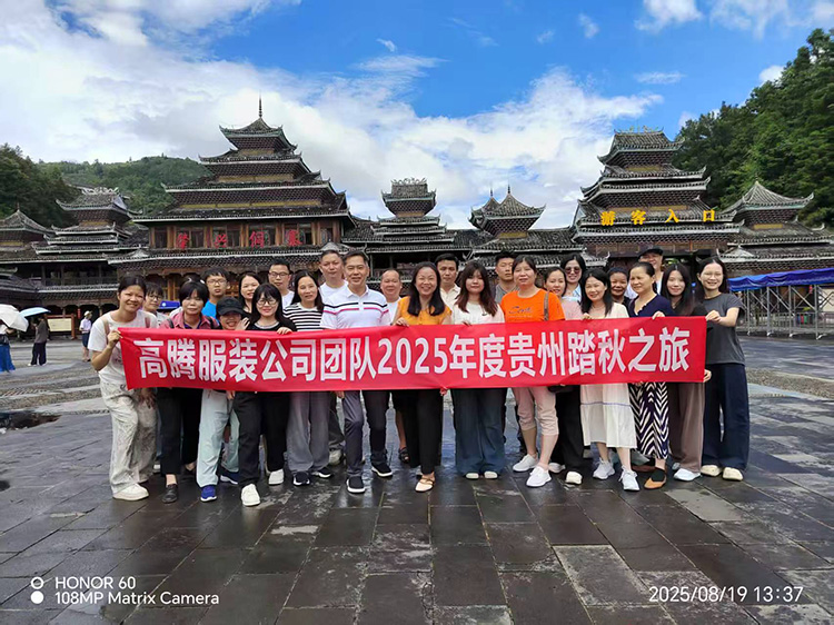 In August, 2025, the team of Gao Teng Clothing embarked on an inspiring autumn tour in Guizhou. Through challenging hiking, cultural experience and collaborative tasks, the team has strengthened unity and cooperation. Each activity highlighted their mutual support and seamless cooperation, and strengthened the team spirit. This journey not only enriched their ties, but also inspired everyone to strive for a common goal.
