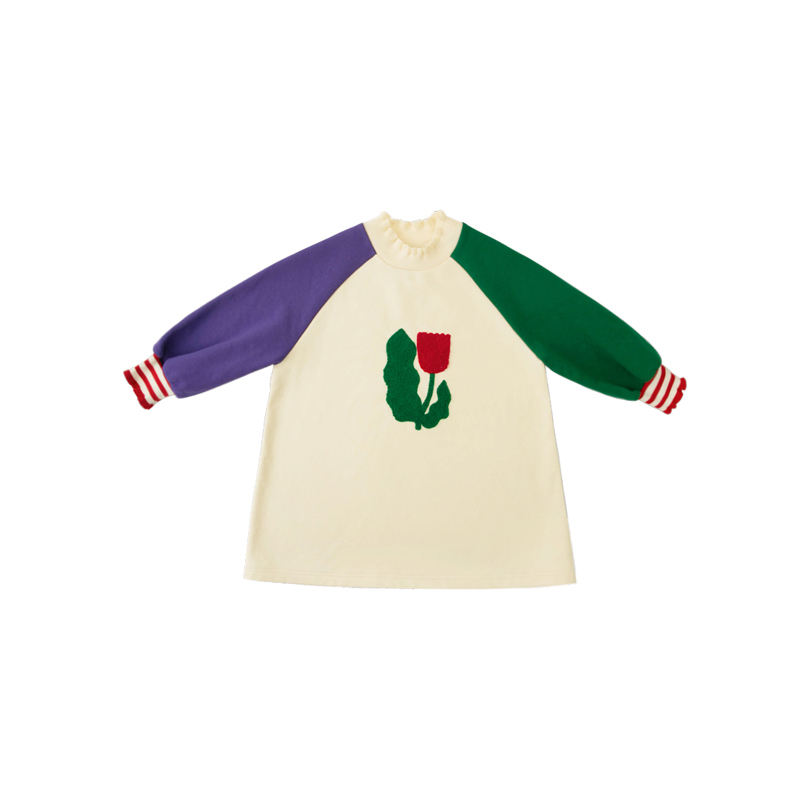 Sustainable Winter Casual Dress for 12-Year-Old Girls Long Sleeve T-Shirt with Flowers Decoration Plus Size Available