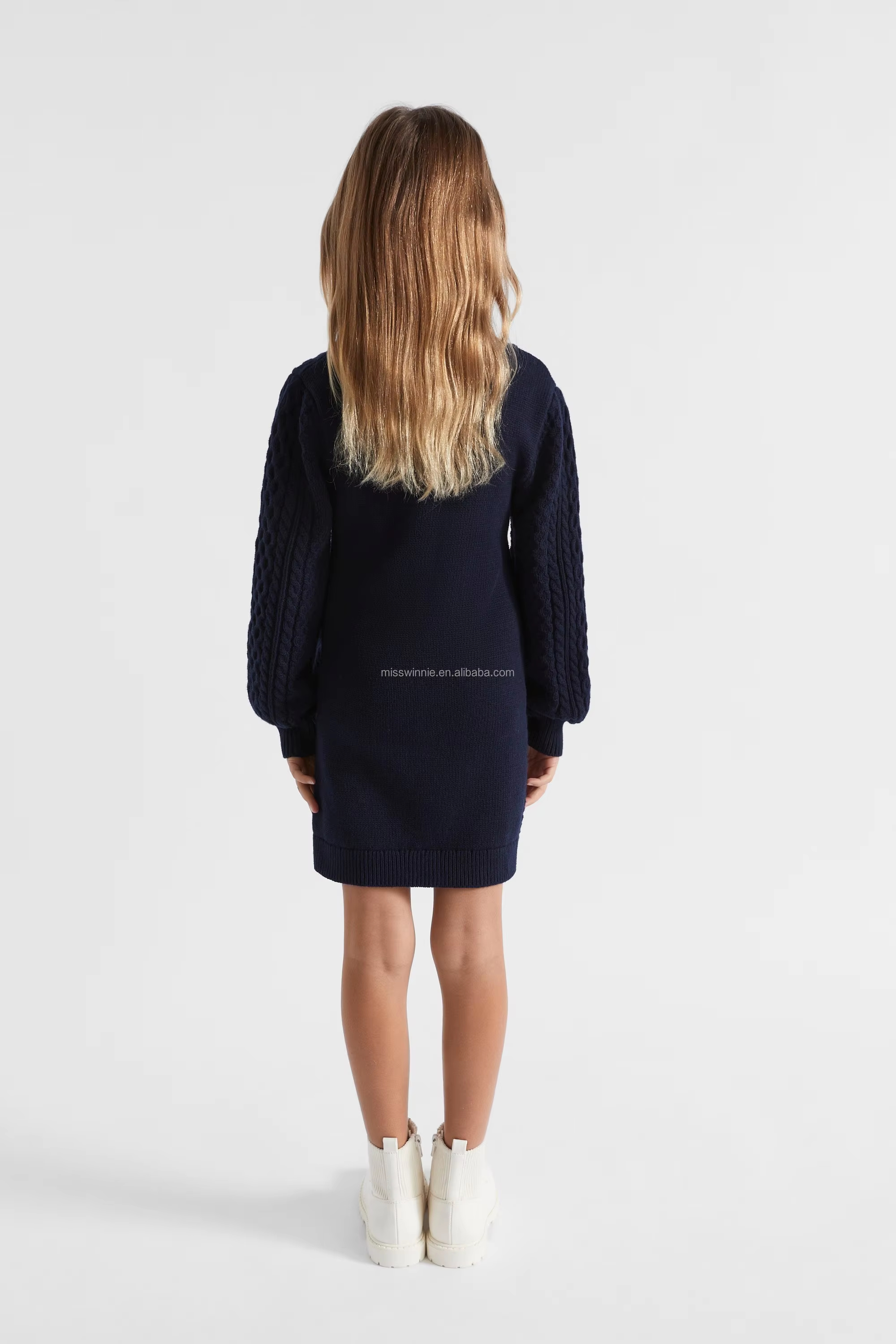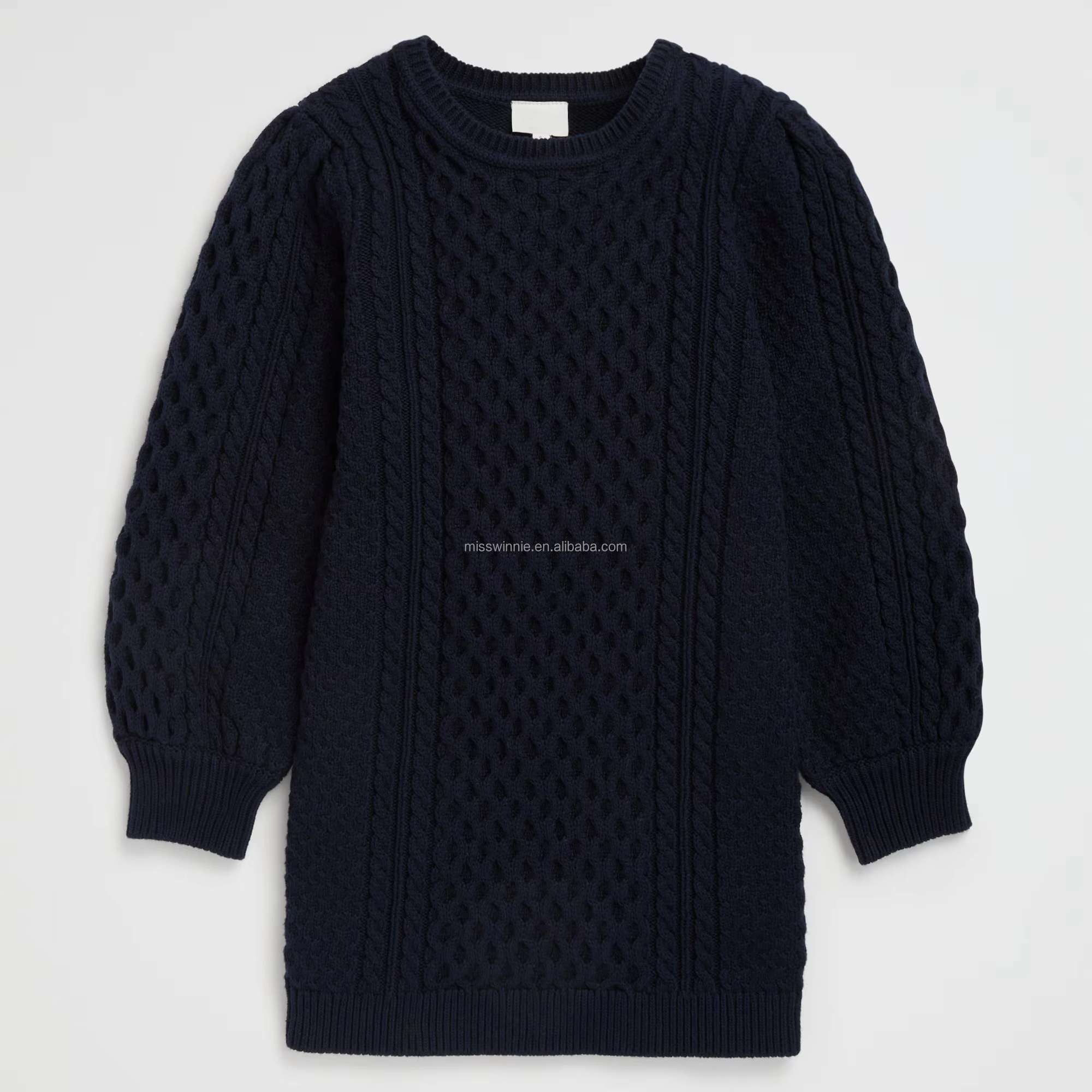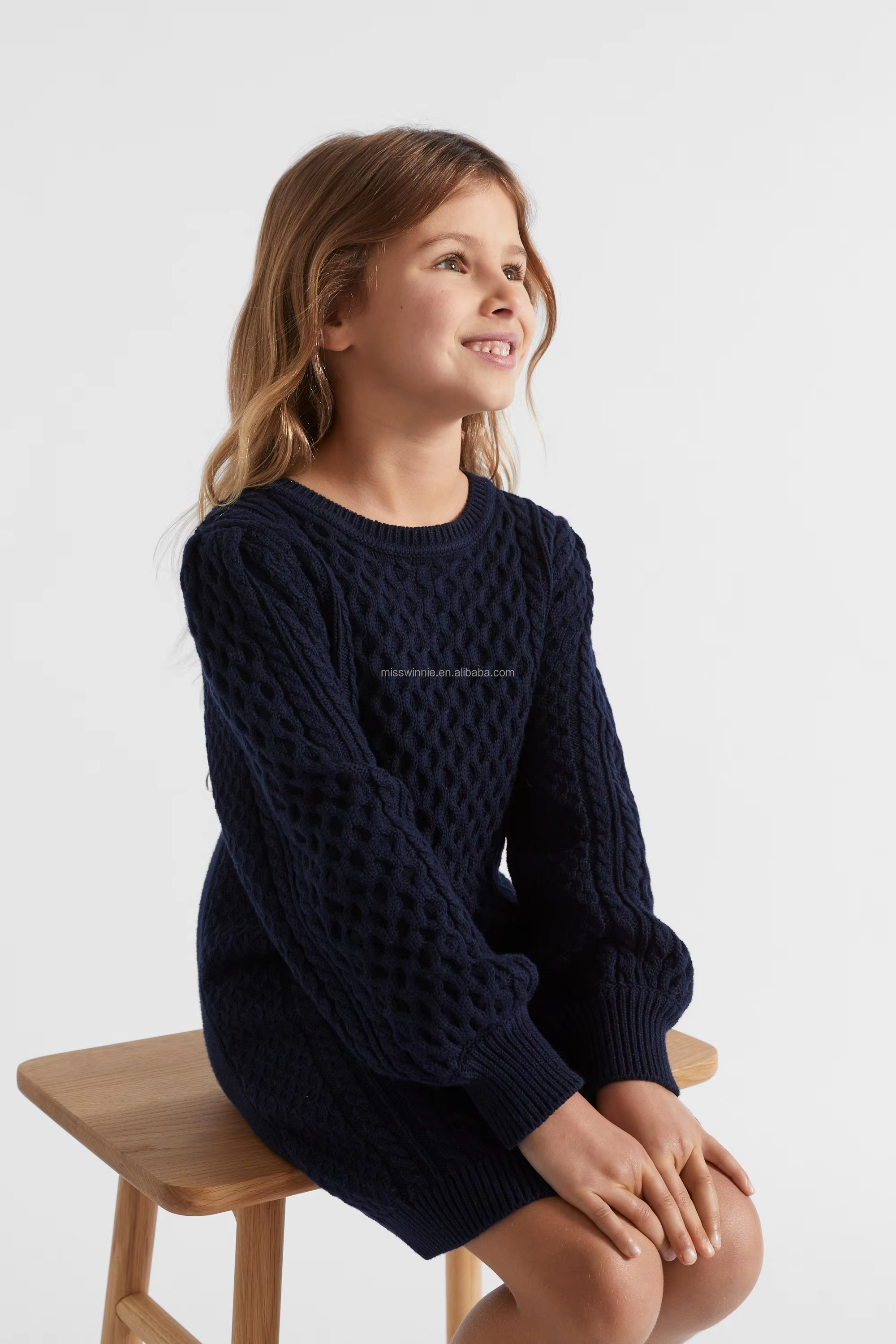 Children's Casual Straight Style Mini Dress Girls' Chunky Knit Jersey Sweater with O-Neck Solid Pattern ODM Supply
