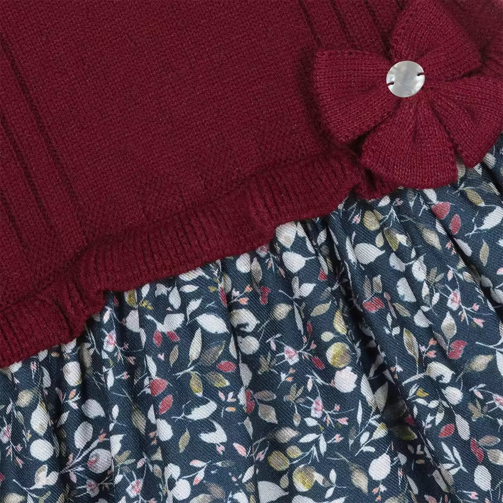 2025 Casual Hot Sell Winter Kids Frock Girls Dress With Print Flower Oem Odm High Quality Red Fashionable Children Clothing