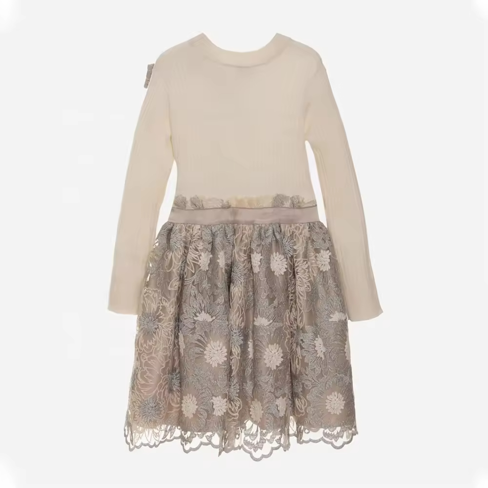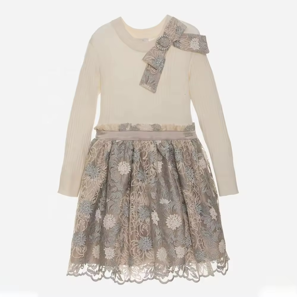 Custom Children Girl Winter Elegant Sweater Dress With Flower Hand Embroidery Wholesale High Quality Kids Clothes Factory