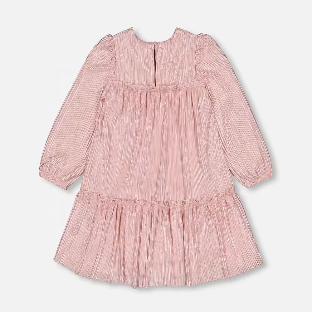 2025 Casual Autumn Pink Kids Frock Girls Dress With Long Sleeves and O-Neck Collar Fashionable Children Clothing for Children