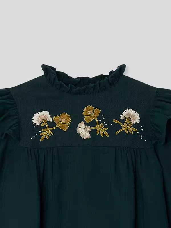 Customized Design Vintage Fashion Style Bubble Ruffle Linen Cotton Spring Baby Girl Dress With Embroidery Custom Logo for Girls