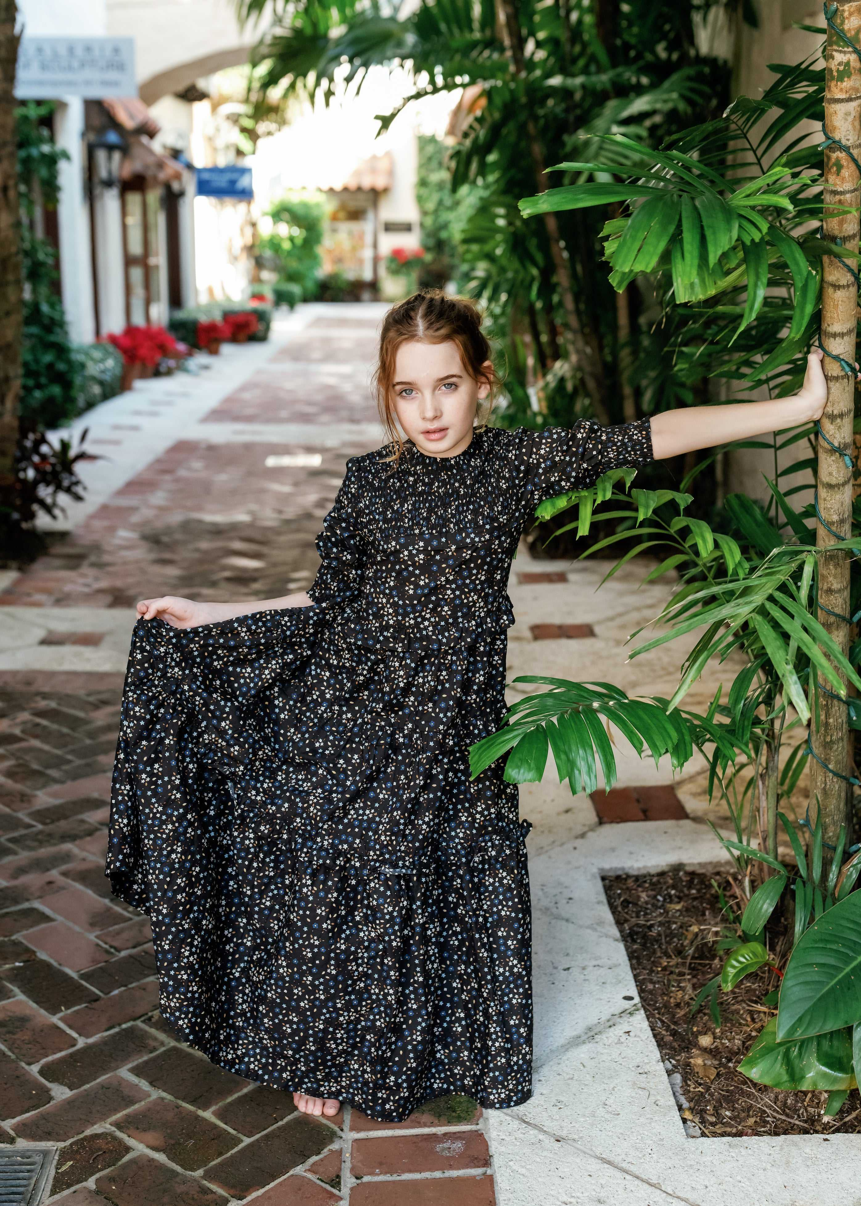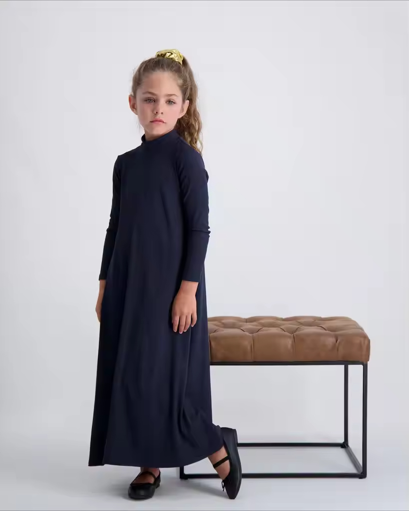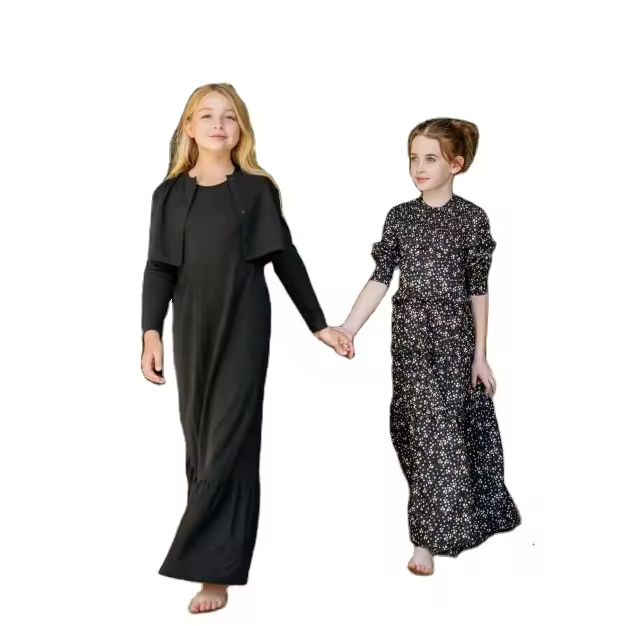 Custom Design Floral Print or Solid Color Robes for Girls Long Sleeve Autumn Mock Neck Kids Maxi Dress Girl Long Dress