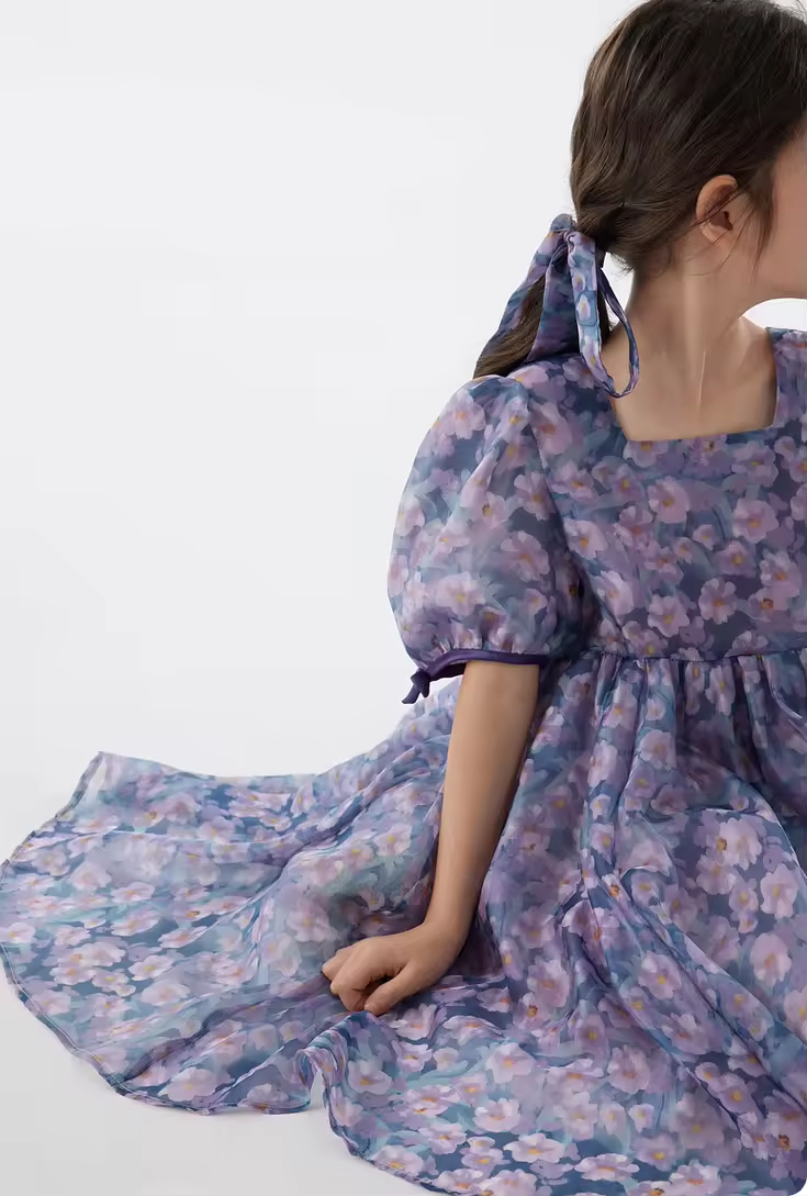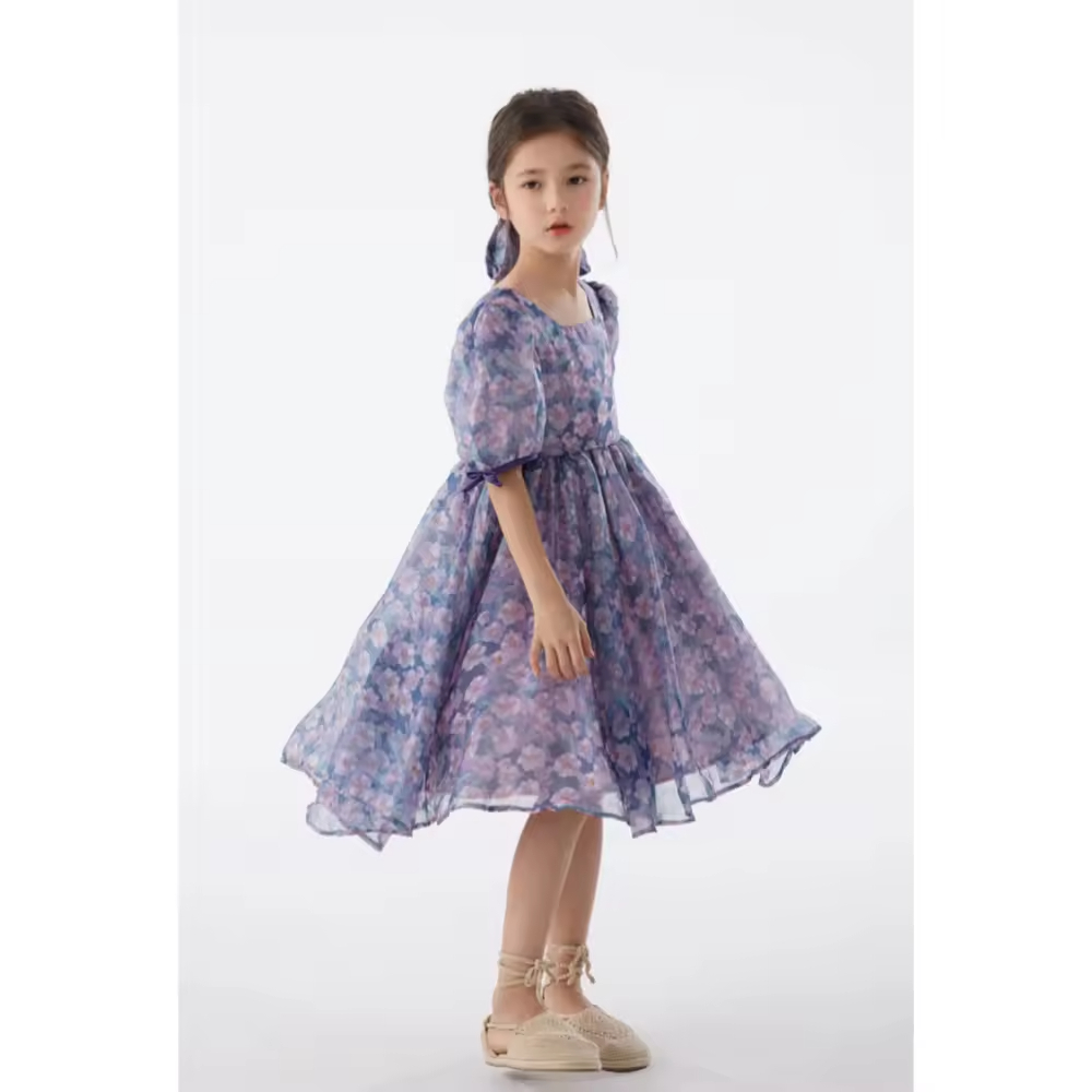 1.Girls Dress in White/black color, quality cotton fabric and a vintage style.