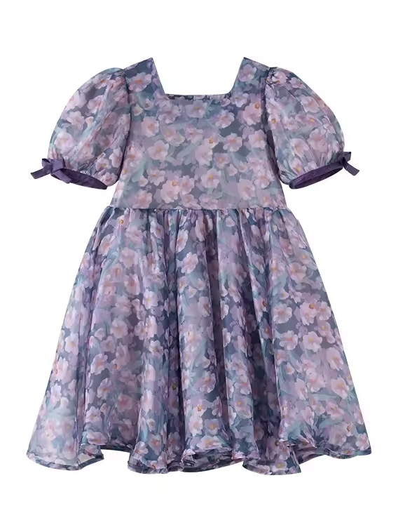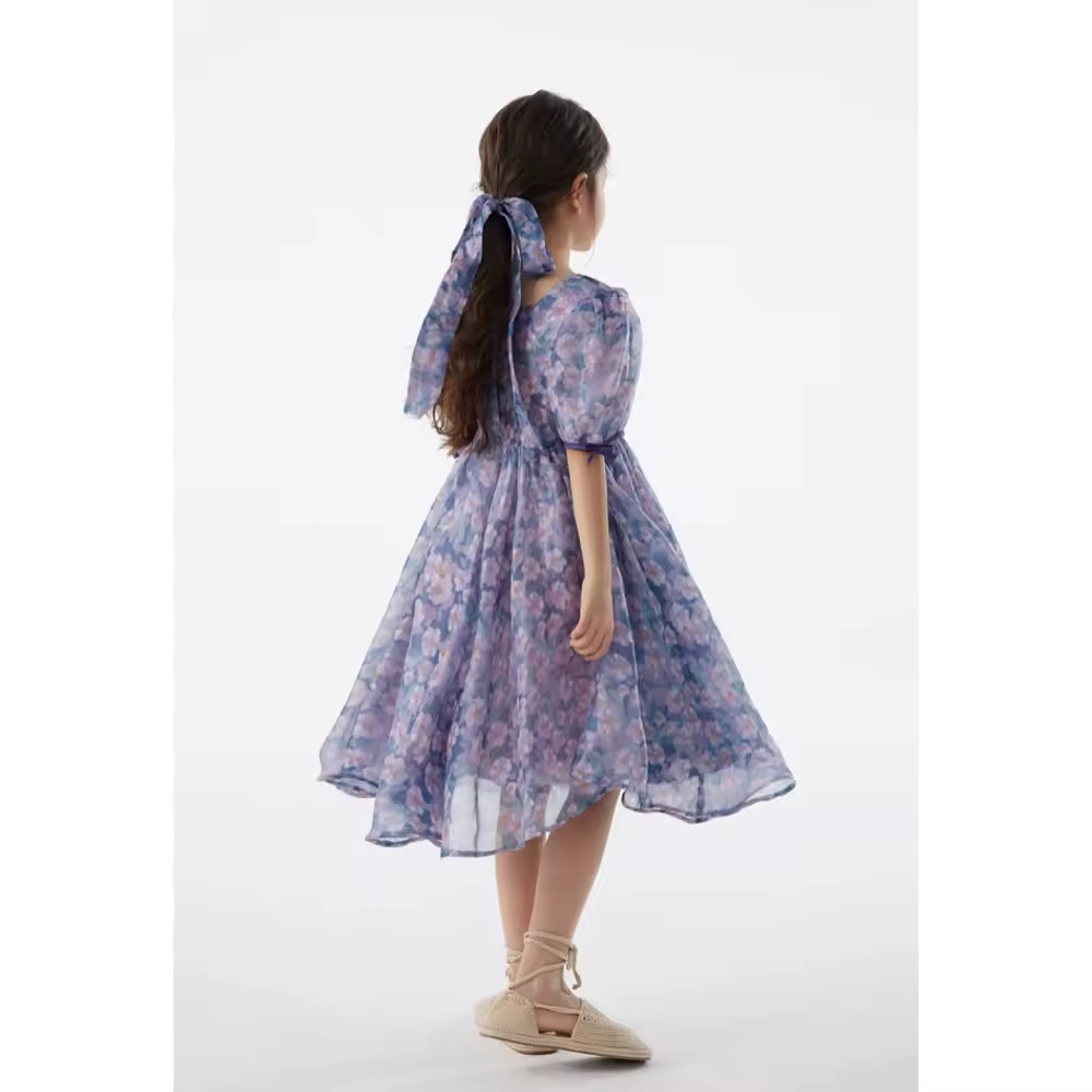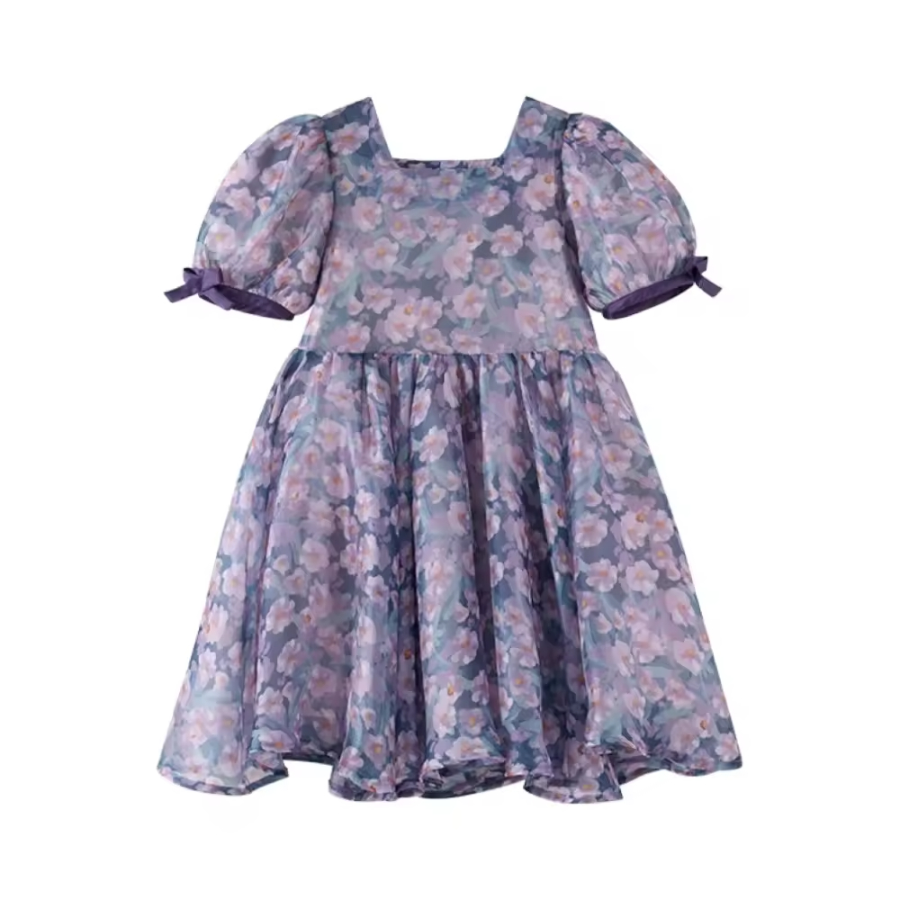 Casual Summer Cotton for Girls Aged 2 12 O-Neck Short Sleeve Denim Children's Clothing Knee-Length Ruffles Custom ODM Available