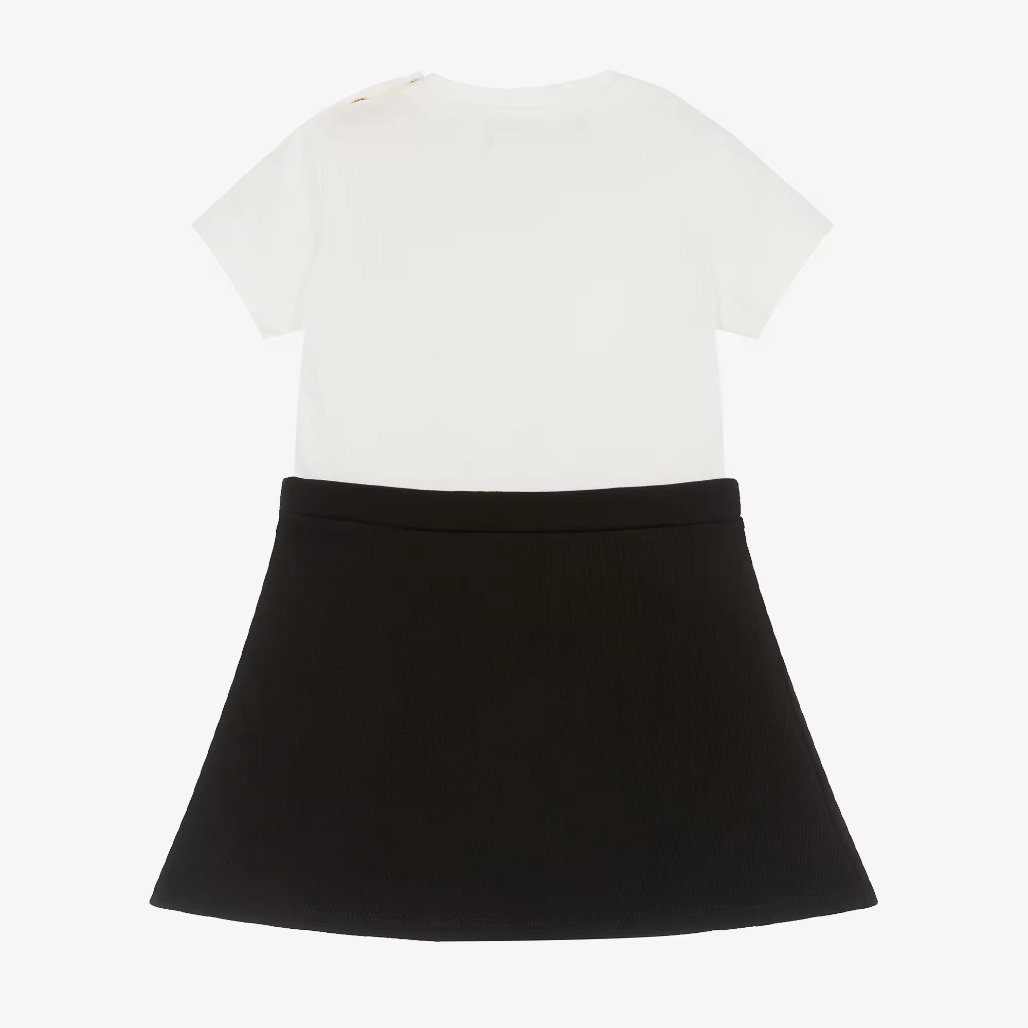 1.Girls Dress in White/black color, quality cotton fabric and a vintage style.