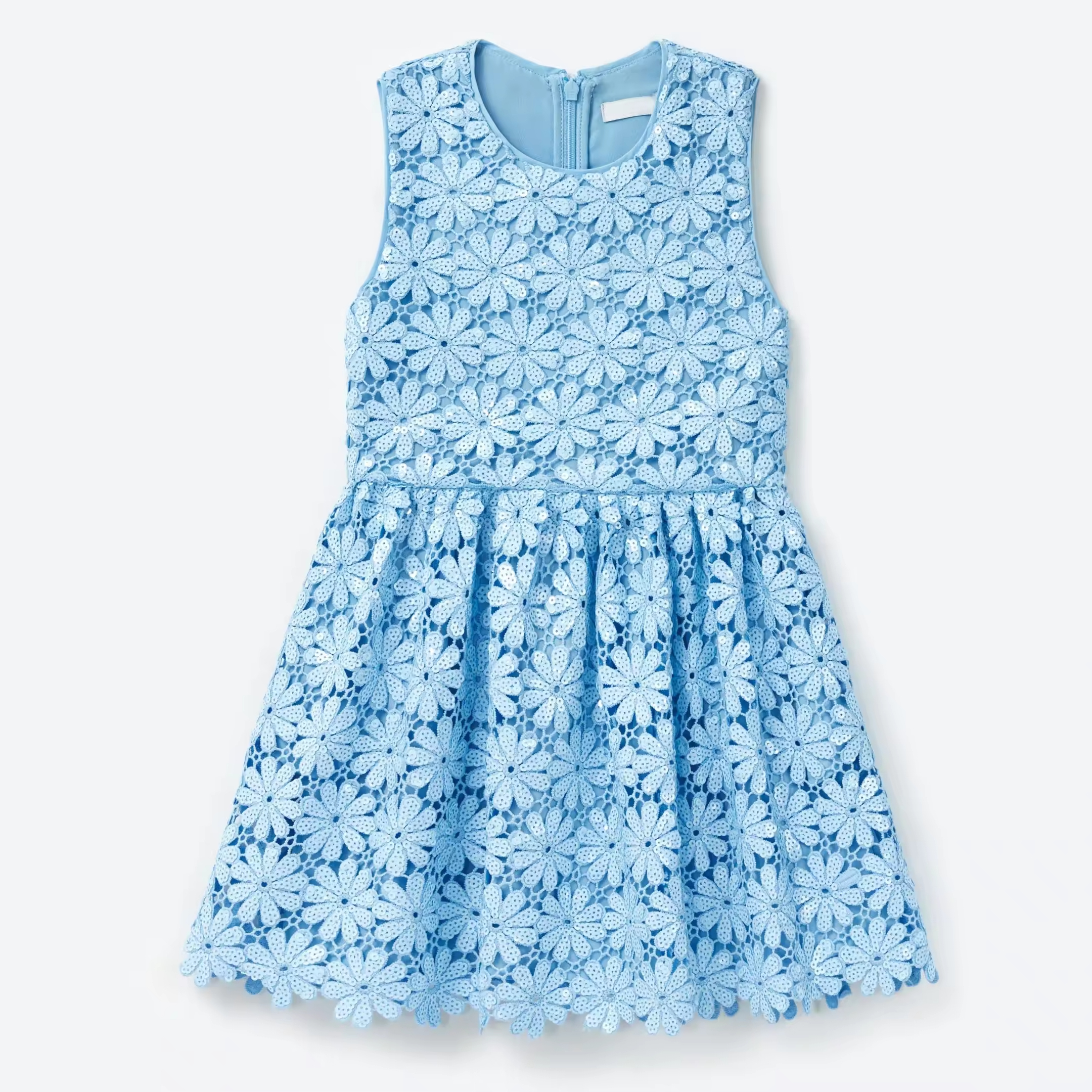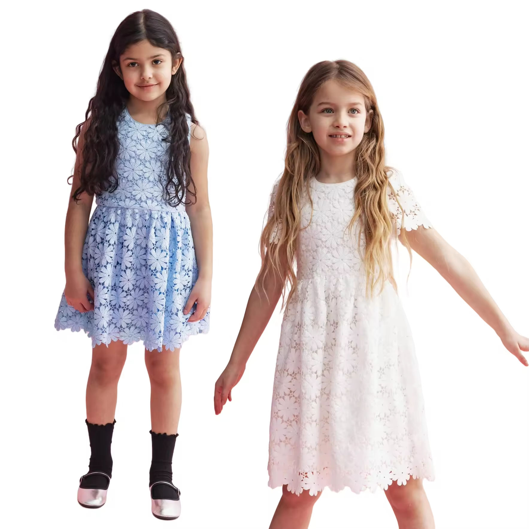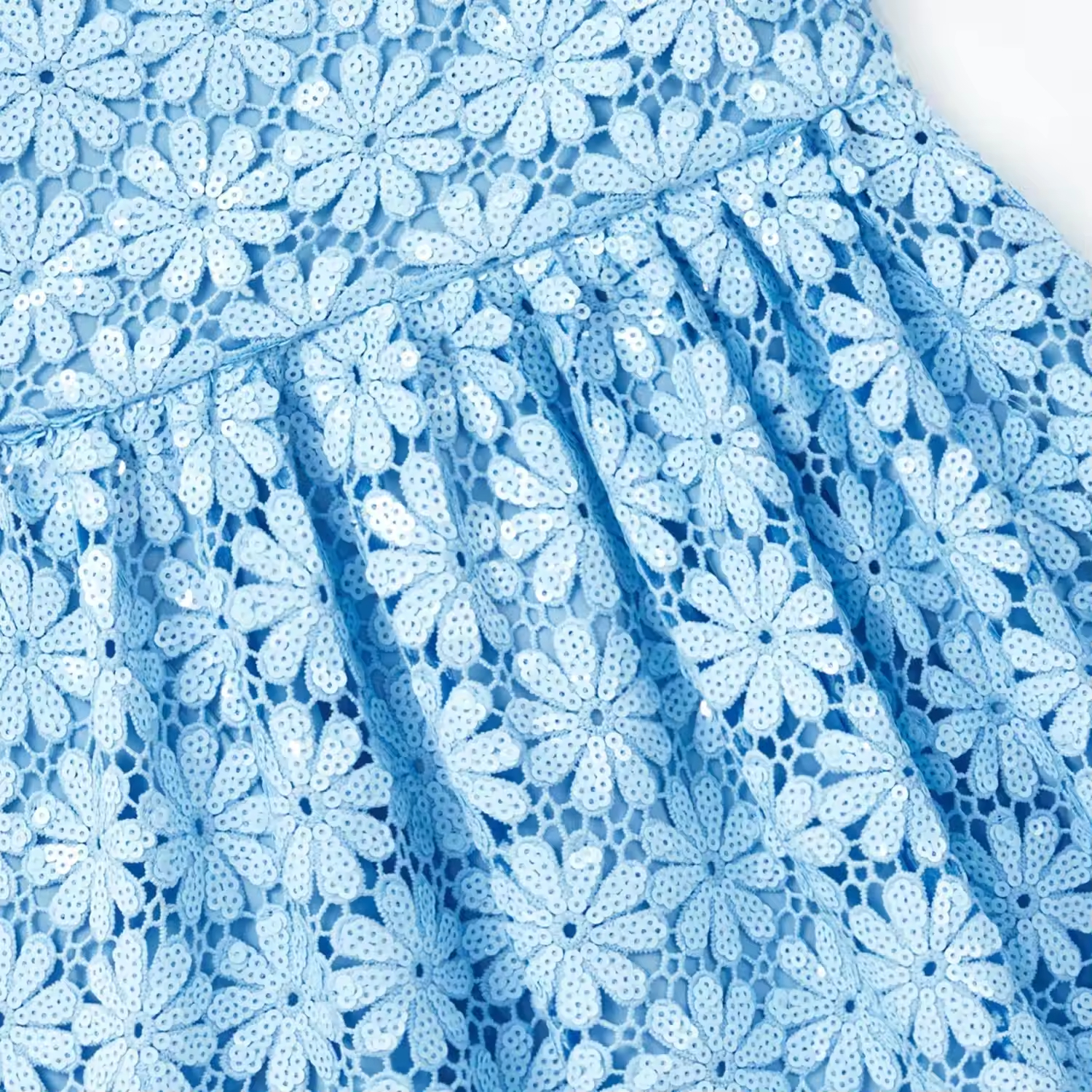 Custom Sequin Lace Embroidery Fabric Dress for Girls Aged 7 to 8 Years Old for Children's Day Celebrations