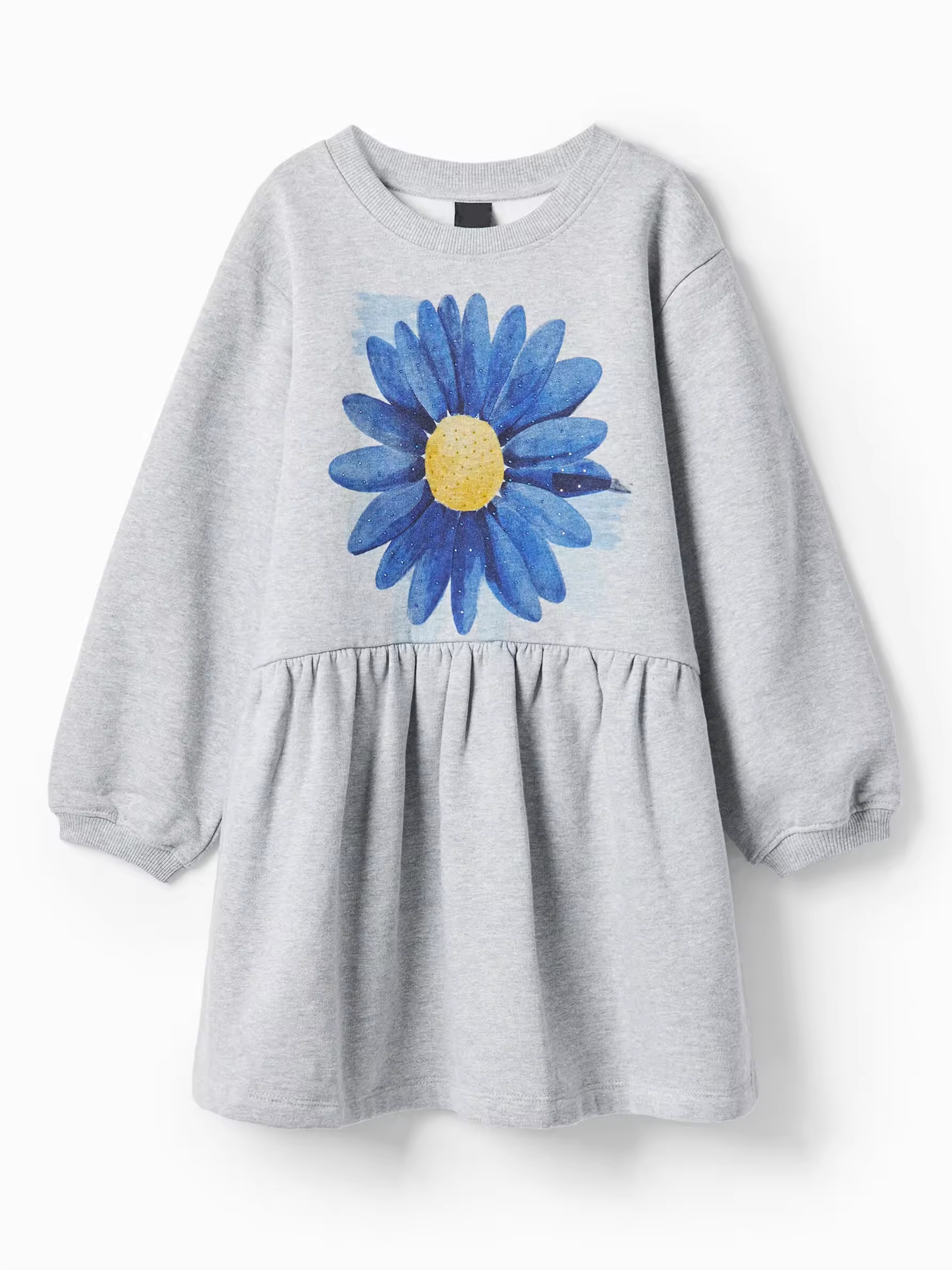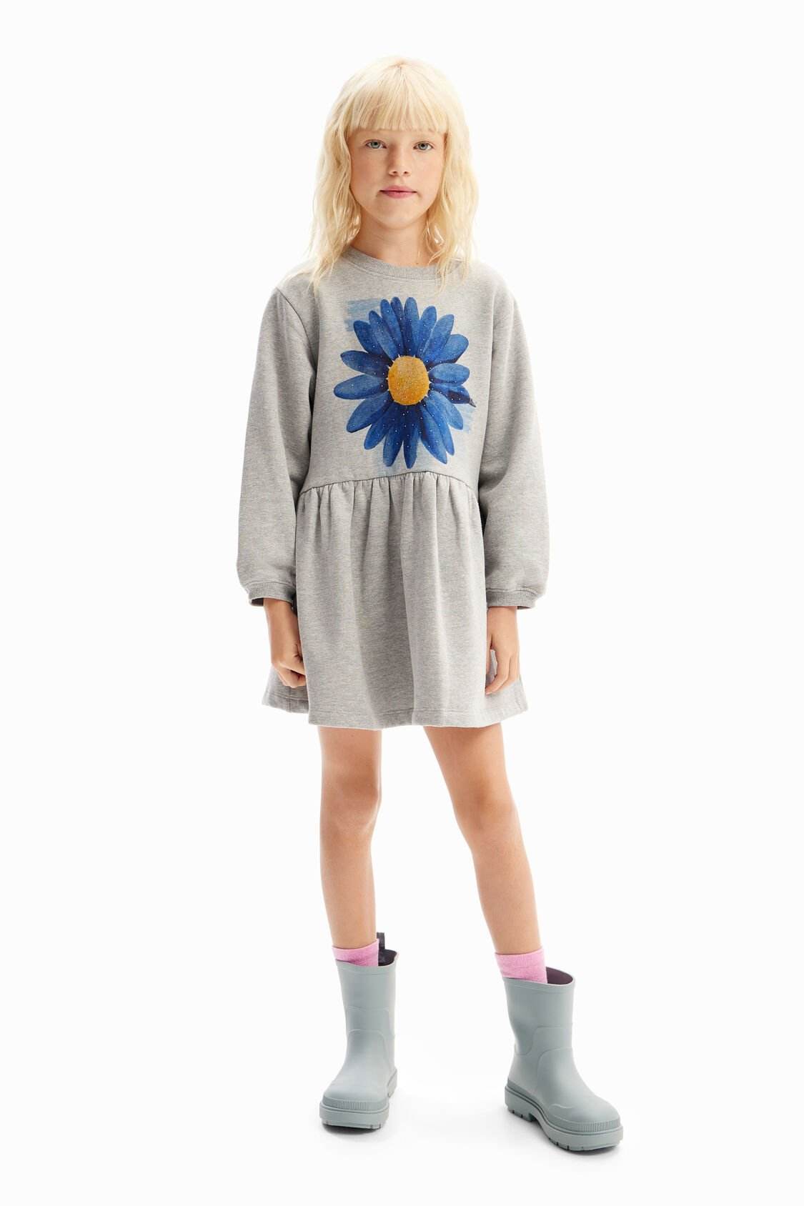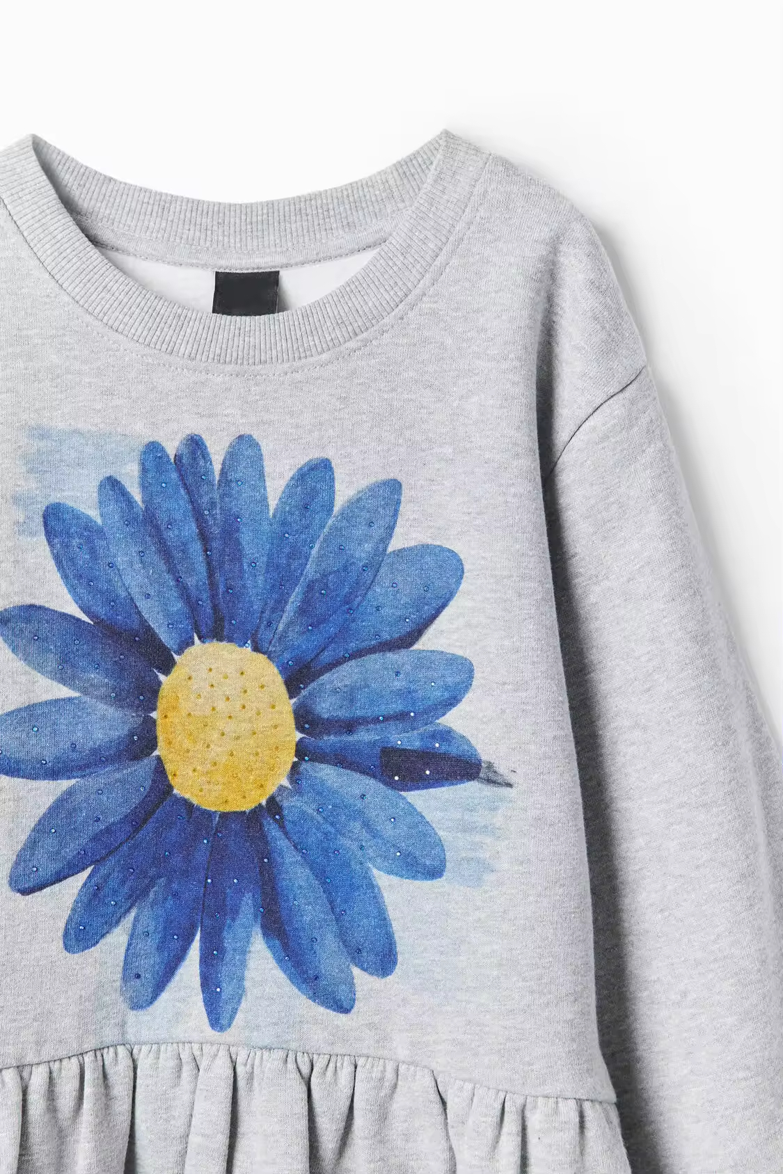 OEM ODM Guangzhou Oversized Sweatshirt Dress for Young Girls Summer Floral Placement Print Knee-Length Young Girls' Fashion