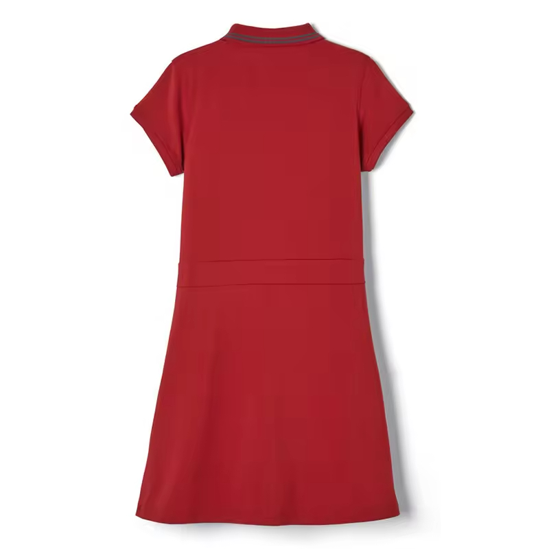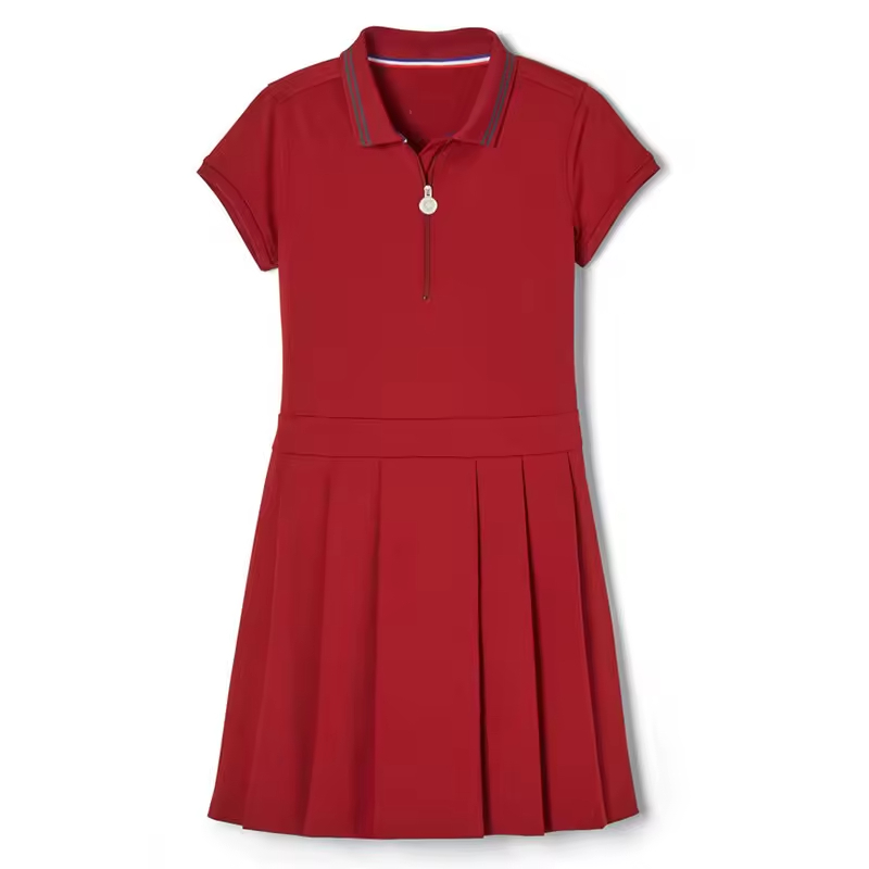 OEM School Uniform Dress for Kids With Pleat Skirt Short Sleeve Girl Polo Dress Red