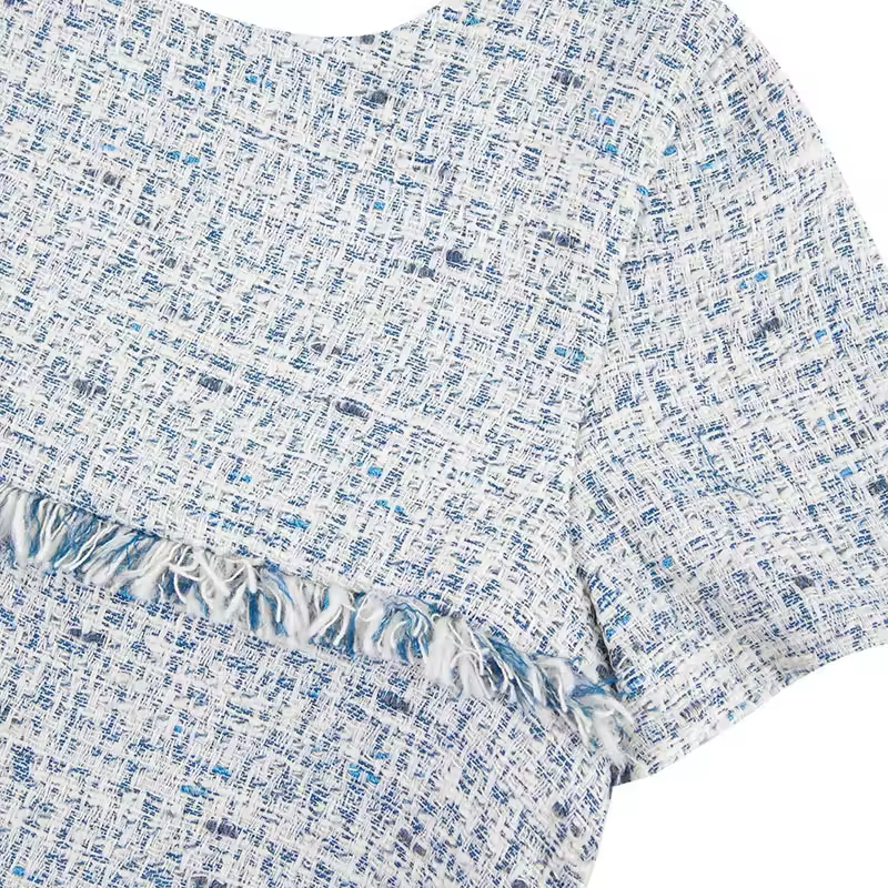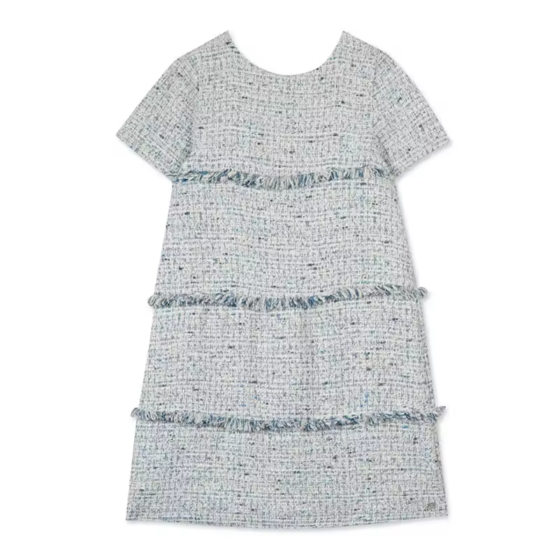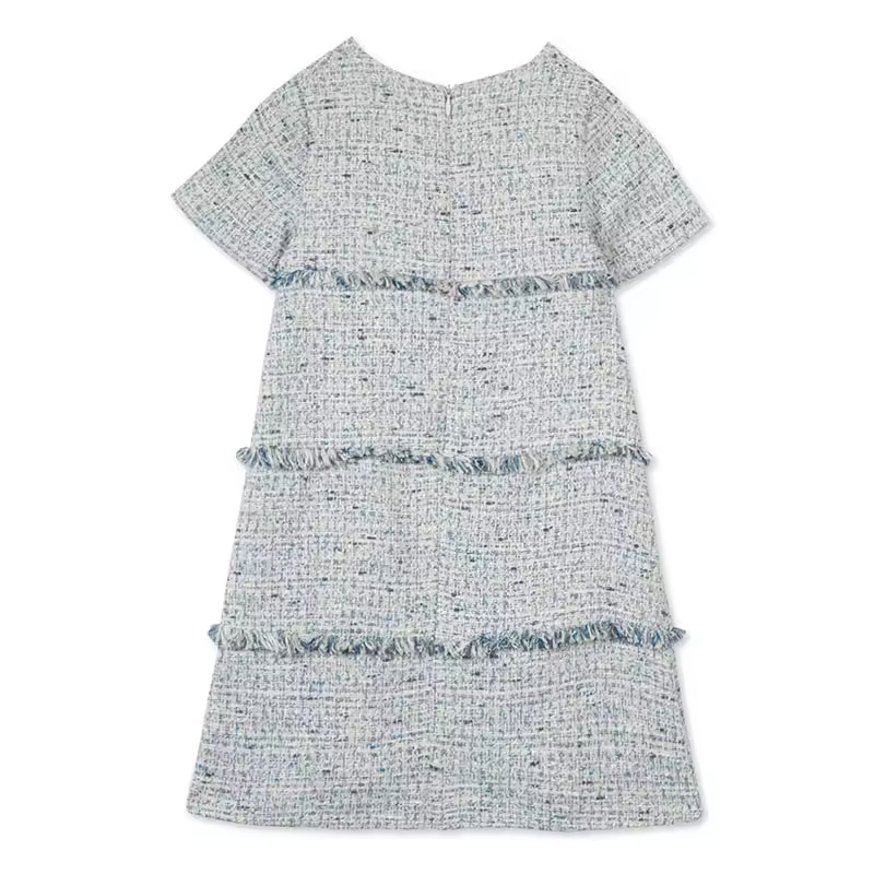2025 OEM Brand Fashion Short Sleeves Tweed Baby Dress Spring Summer Autumn Child Tweed with Tassels Tiers