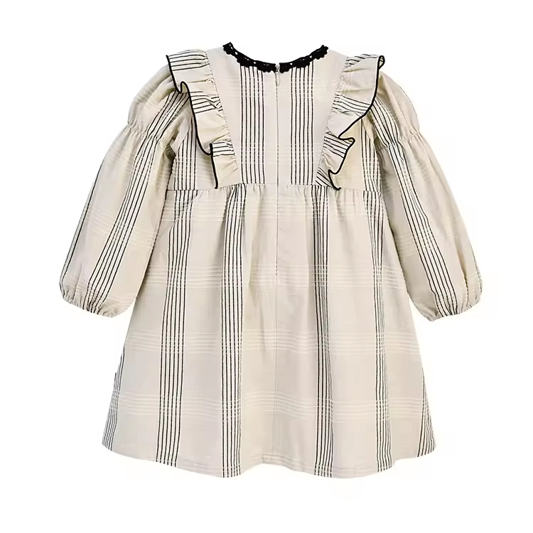 Boho Chic Baby Girl Dress Long Puff Sleeve Knee-Length Soft Cotton Cheap Price Plaid Pattern for Girls' Parties Woolen Fabric