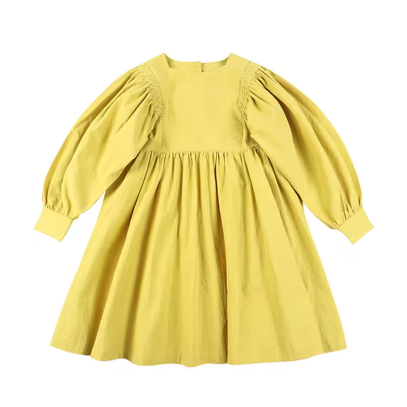 Loose Design Yellow Dress Puff Sleeves Dress for Girls 3-14 Years