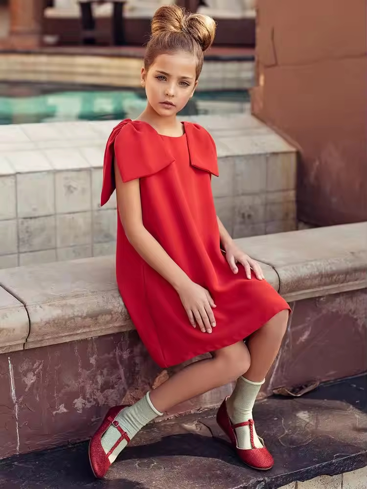 1.Girls Dress in White/black color, quality cotton fabric and a vintage style.