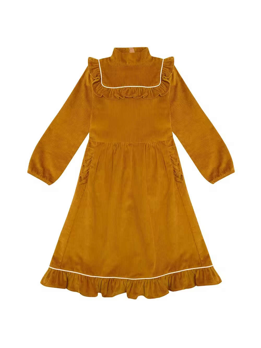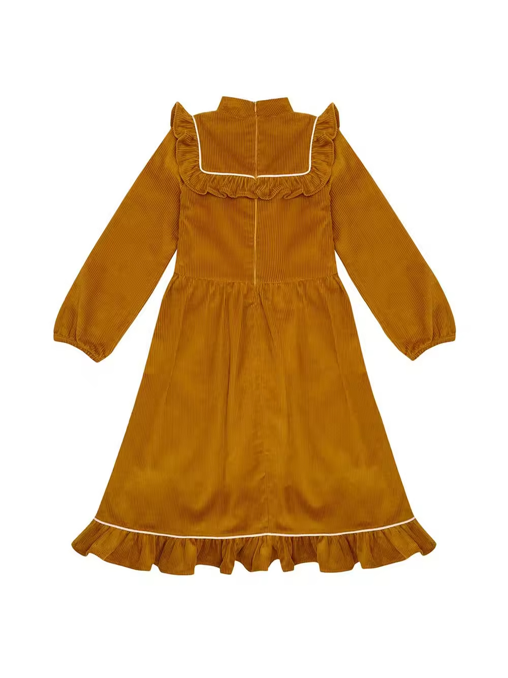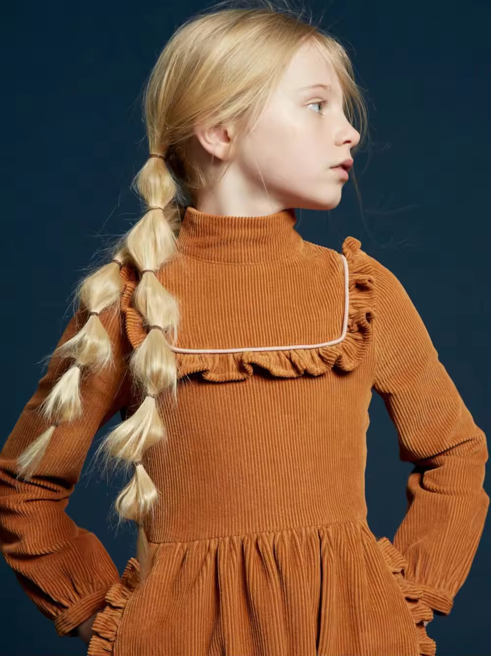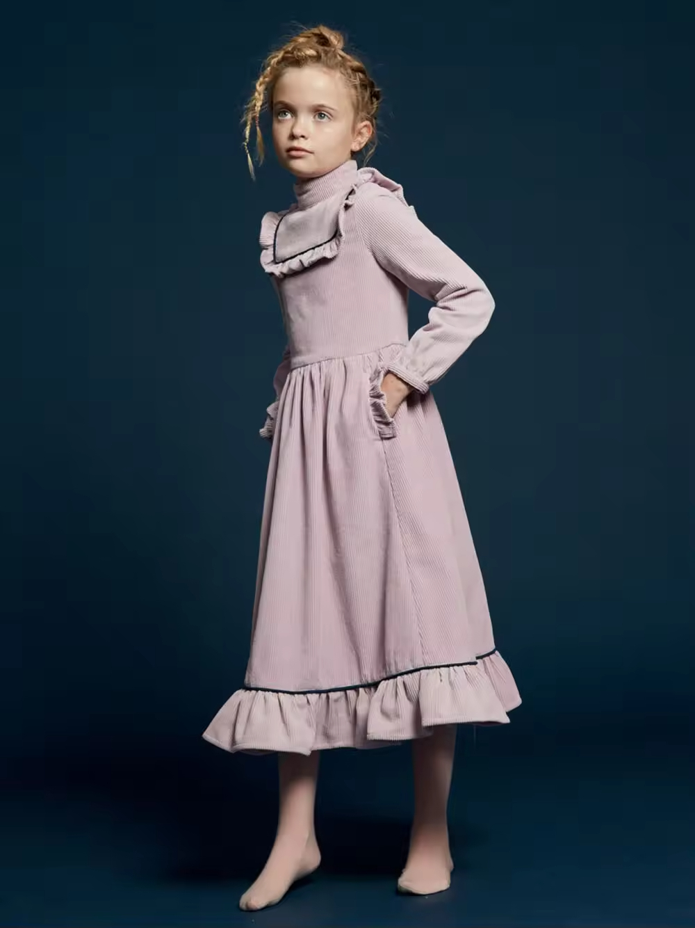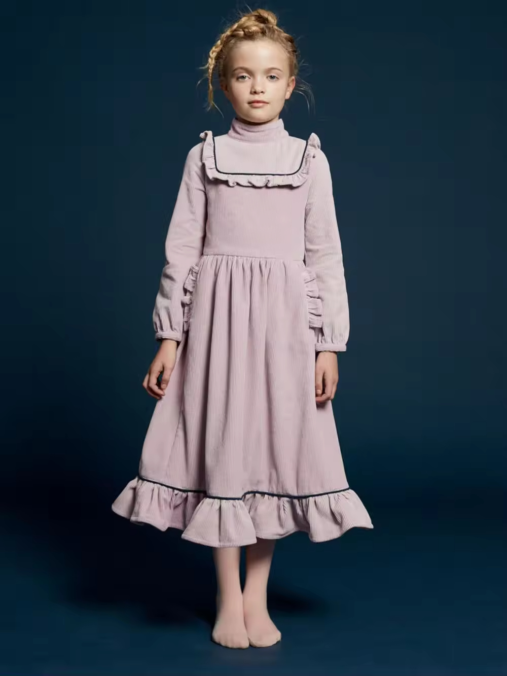 Fashion Causal Girls Dresses Ruffles Decoration Children Dress Solid Velvet Maxi Dress Kids Girl for Winter