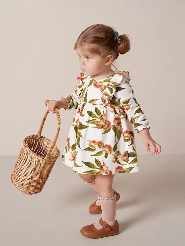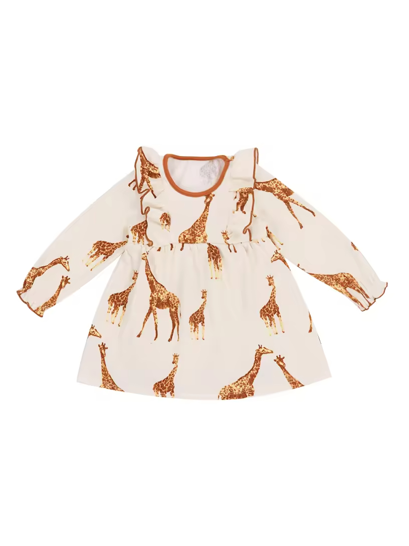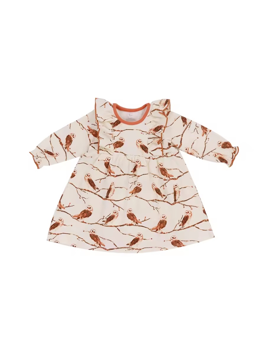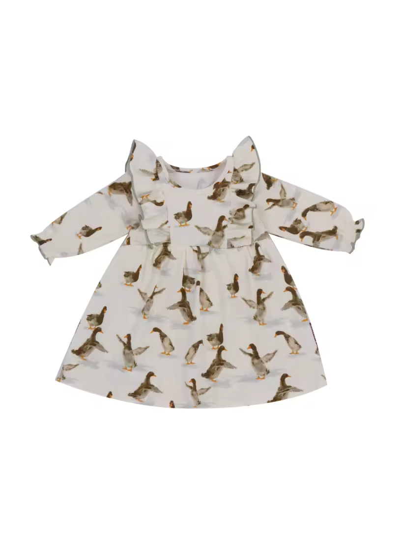 Custom Allover Reactive Print Toddler Girls Winter Dresses With Ruffle Long Sleeve Cotton Toddler Girls Dresses Manufacturer