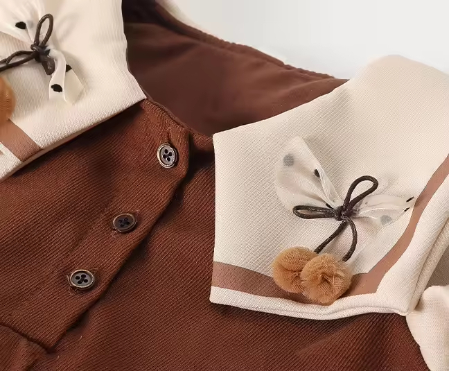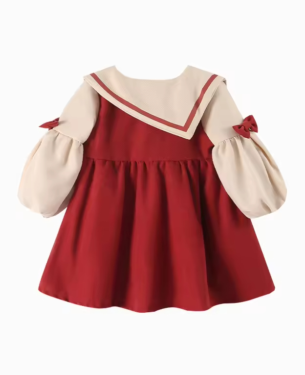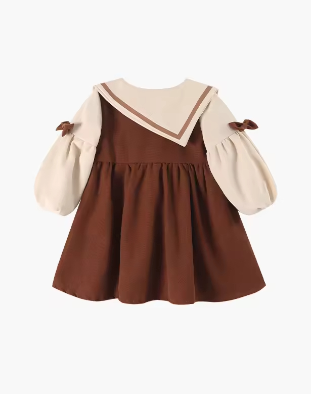 Fashion Causal Girls Dress Long Sleeve Handmade Decoration Turn- Down Collar Dress for Winter Kids Girls