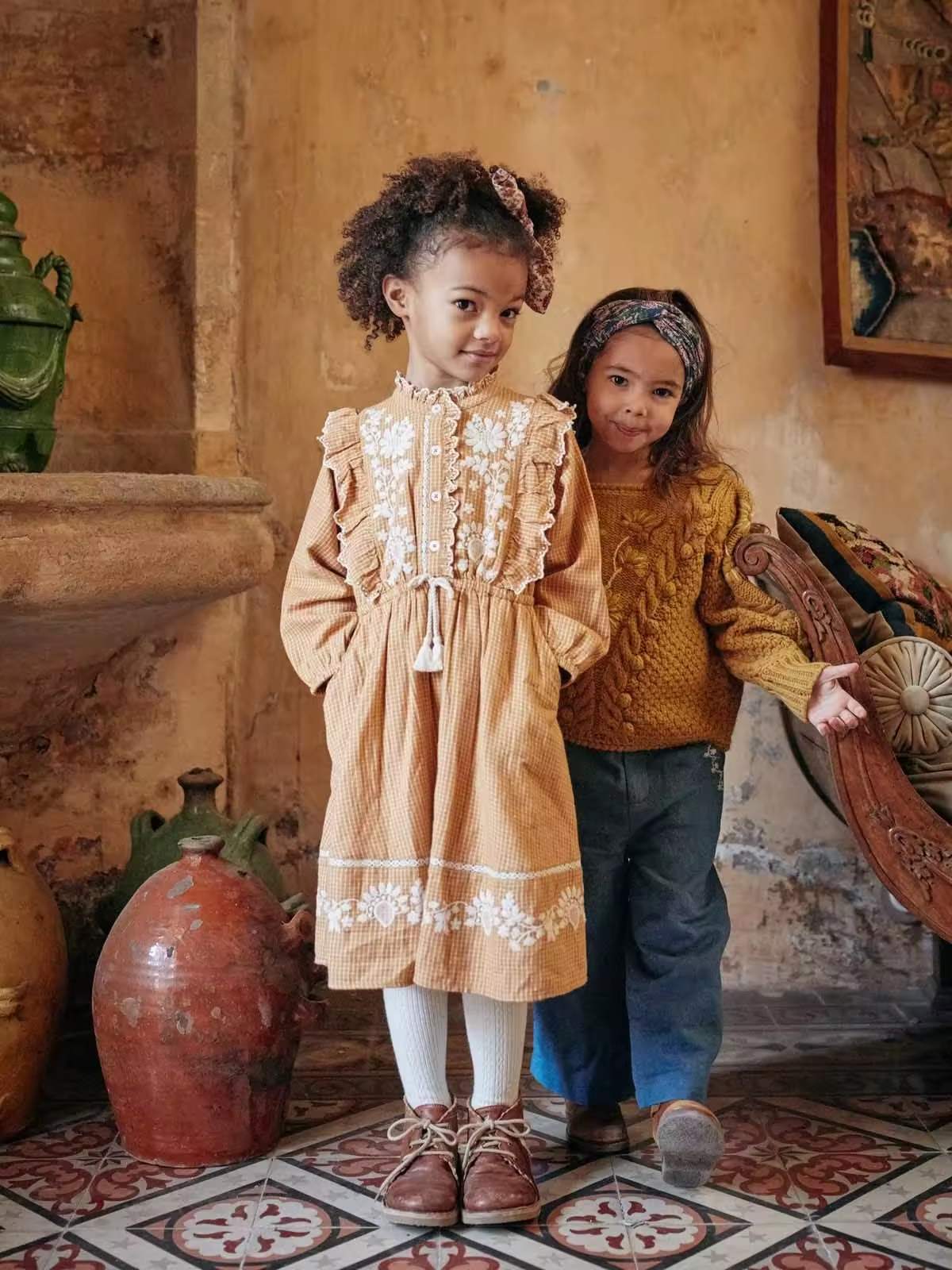 1.Girls Dress in White/black color, quality cotton fabric and a vintage style.