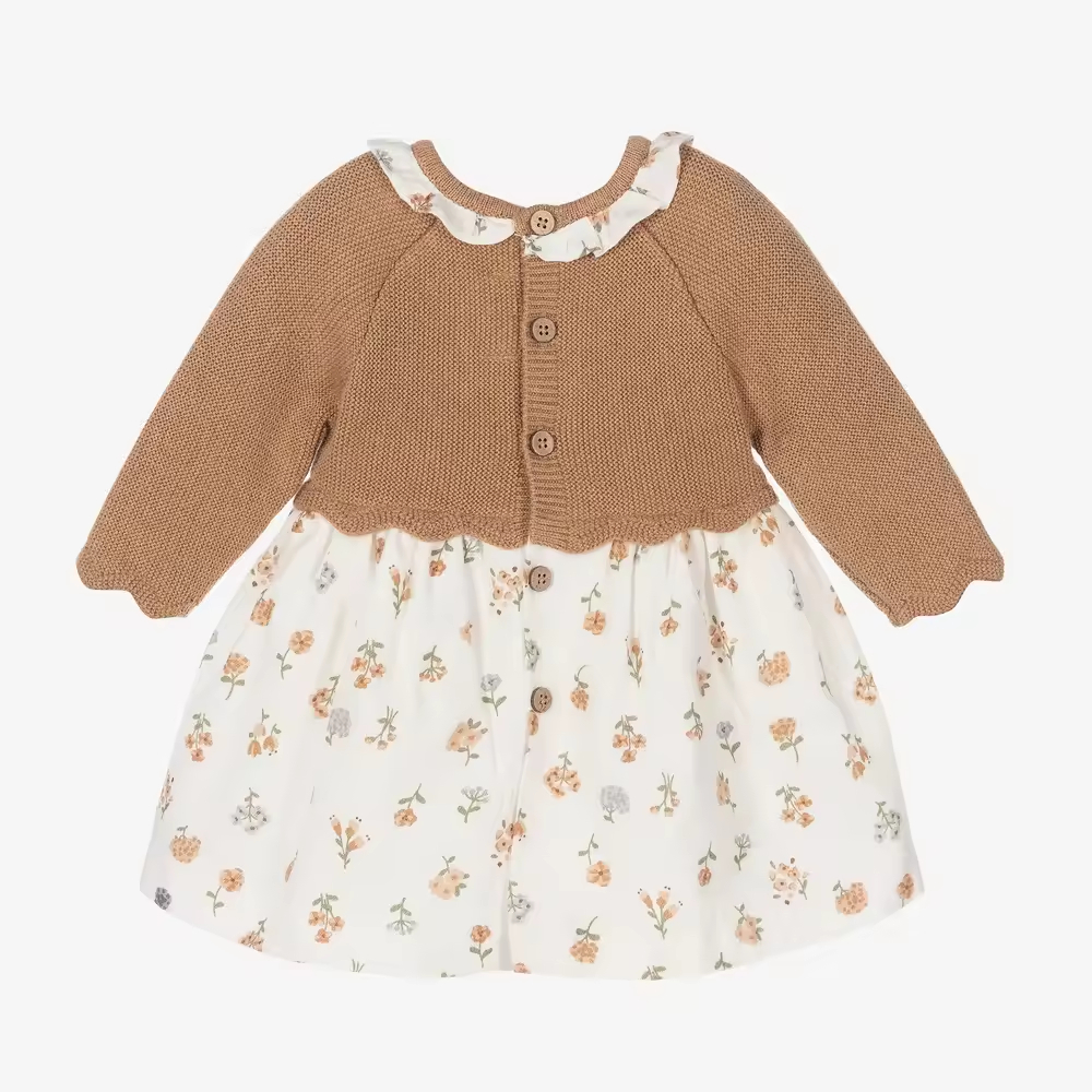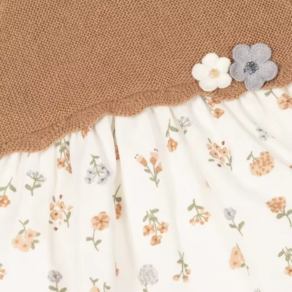 Custom Private Label Girls Cotton Dresses Kids Winter Autumn Natural Oat Sweater Dress With Floral Print Baby Toddler Dresses