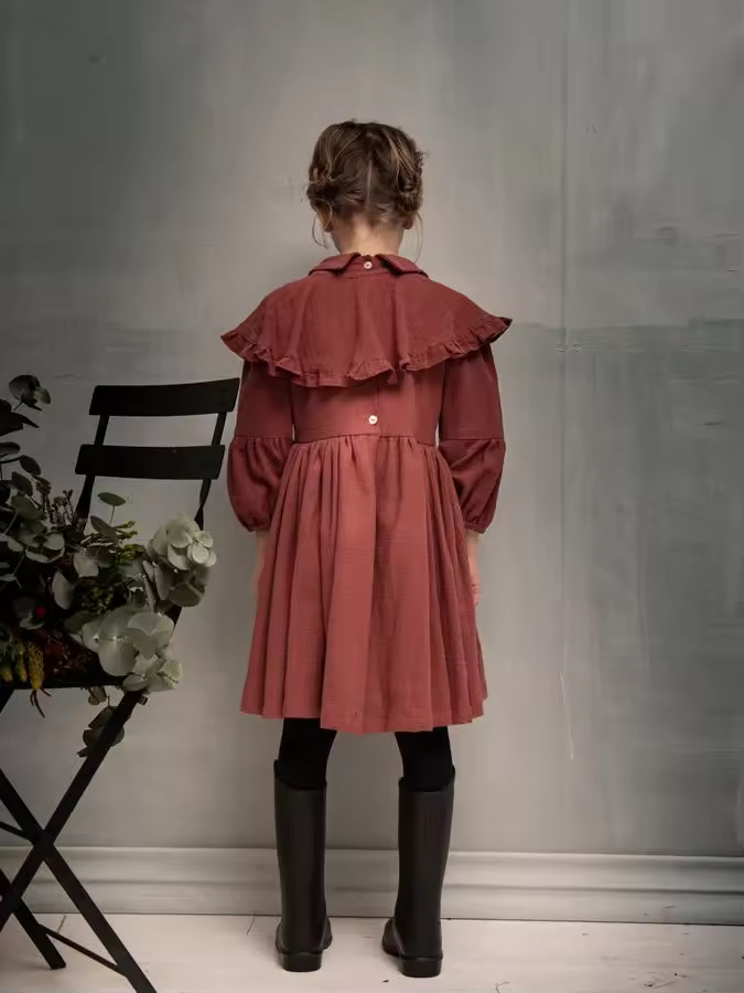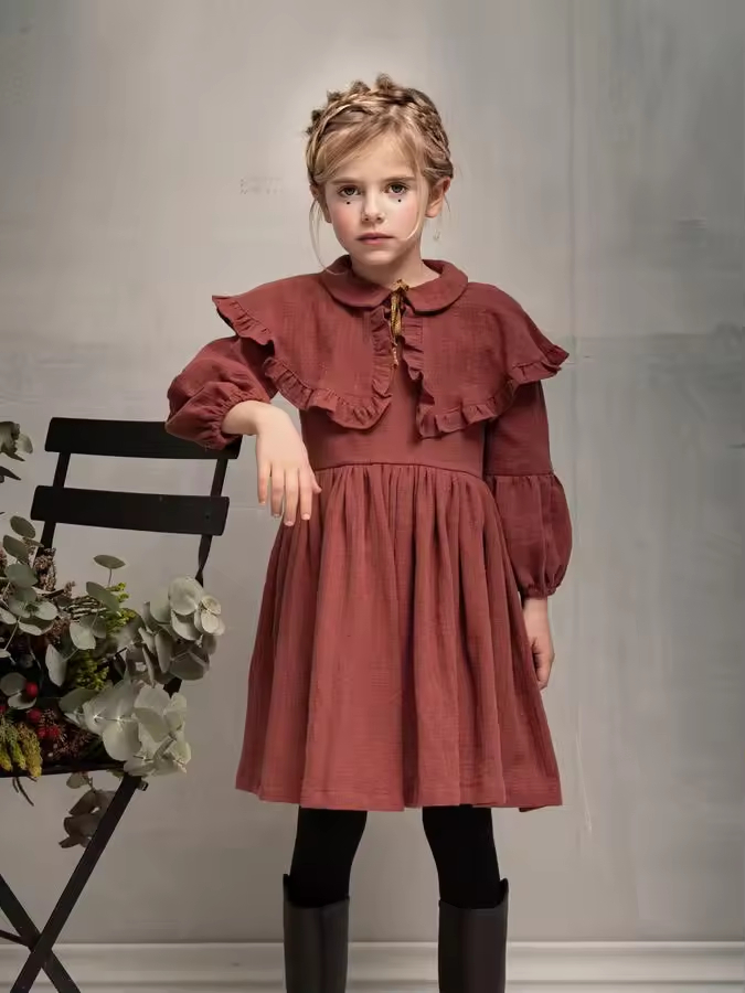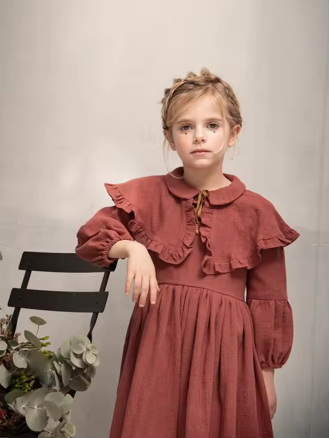 Custom Casual Style Kids Cotton Dresses Spring Long Sleeve Muslin Cotton Linen Dresses