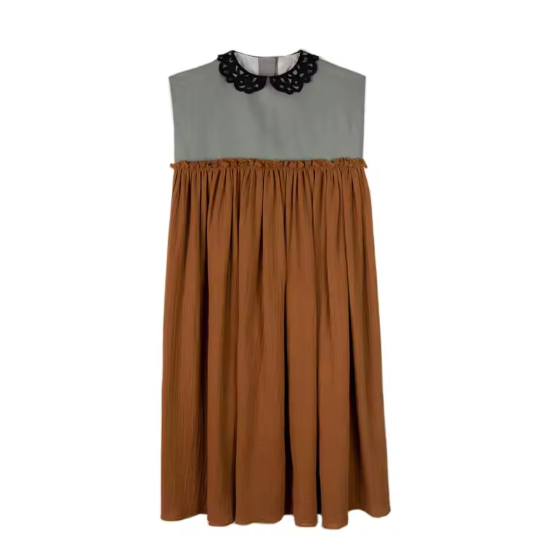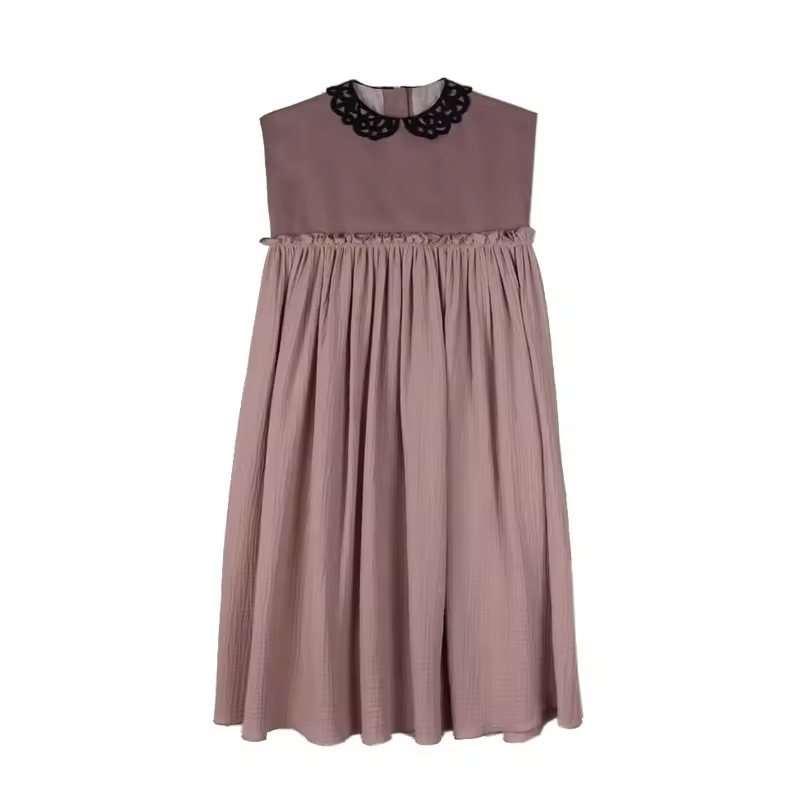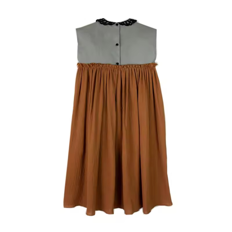 Hot Selling Sleeveless Crochet Collar Design Girls Muslin Cotton Long Dress Filles Robes