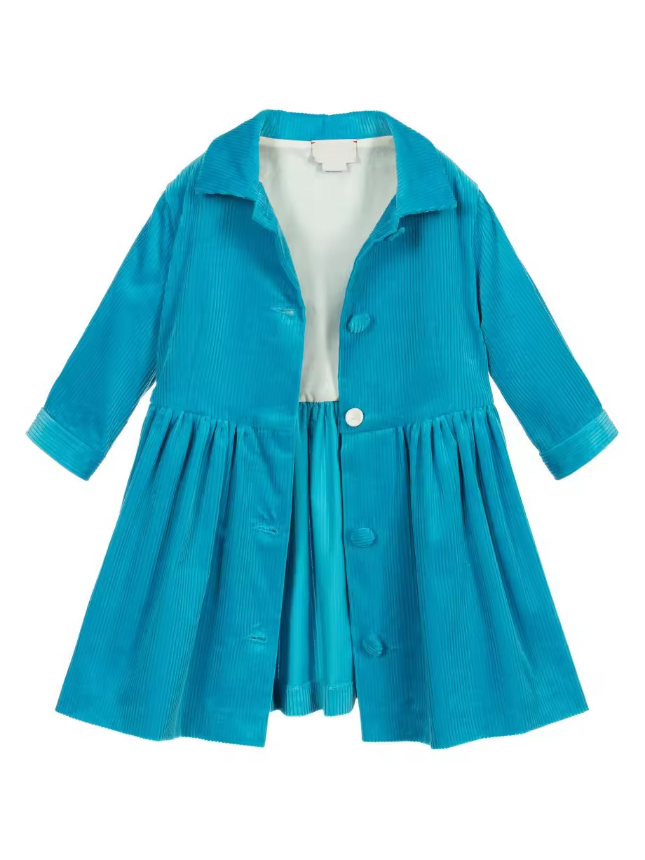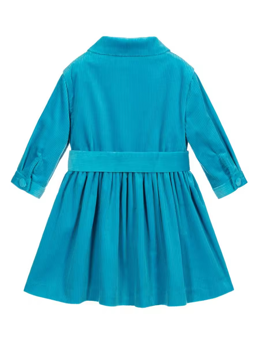 Custom Brand Bright Blue Girls Corduroy Dress for Kids Front Button Down Toddler Girls Dresses With Belt