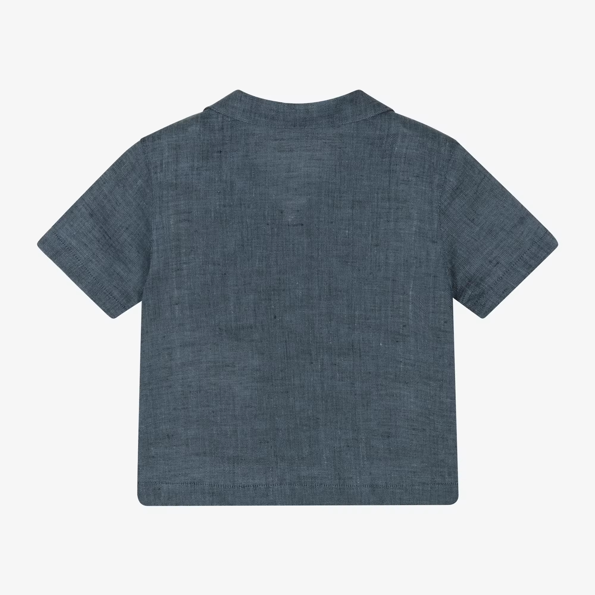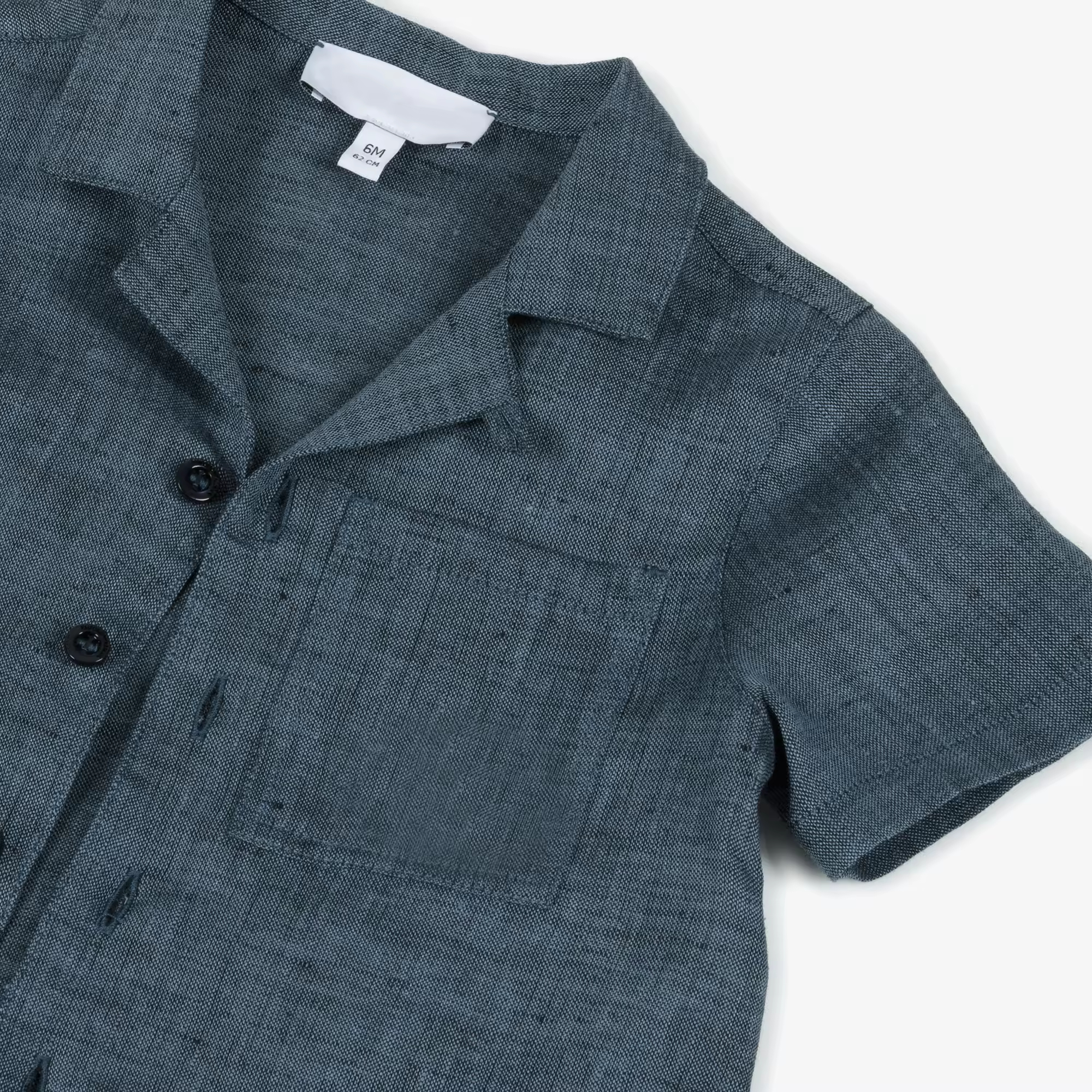Custom NEW Summer Vintage Style Loose Short Sleeve Button Down Shirts for Kids Boys Cotton Linen Blend