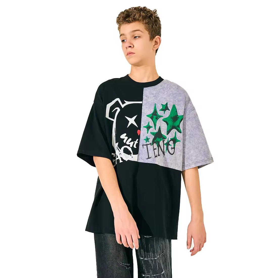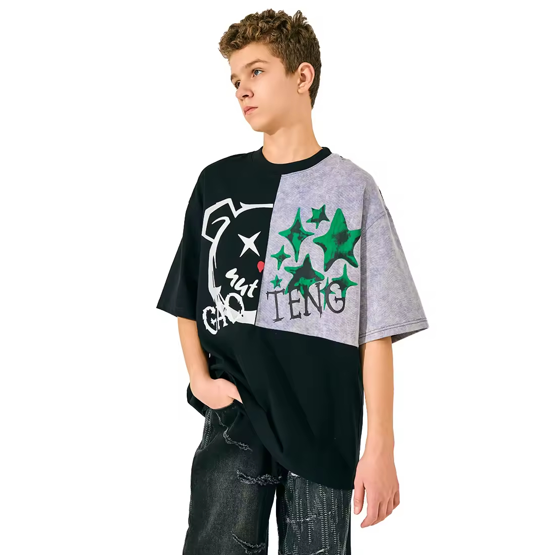 Customizable 100% Cotton Boy T-Shirt Casual Jersey Style with O-Neck and Animal Pattern for 10-Year-Olds in Summer
