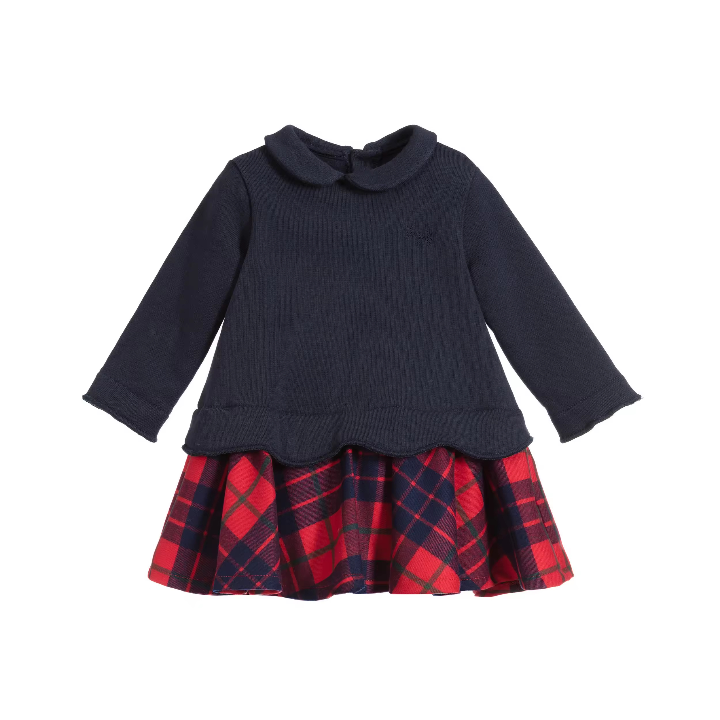 Winter knitted kids clothing A-line little girl printing dress with peter pan collar