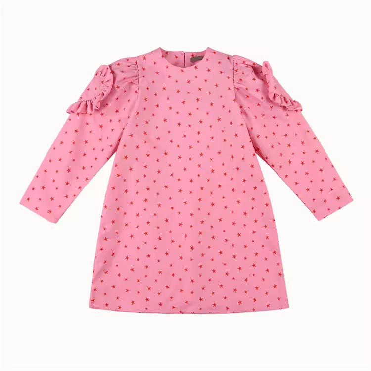 Guangzhou Manufacturer OEM Boutique Fashion Design Long Sleeve Kids Dress Stars Print Cotton Elegant Casual Dresses for Girls