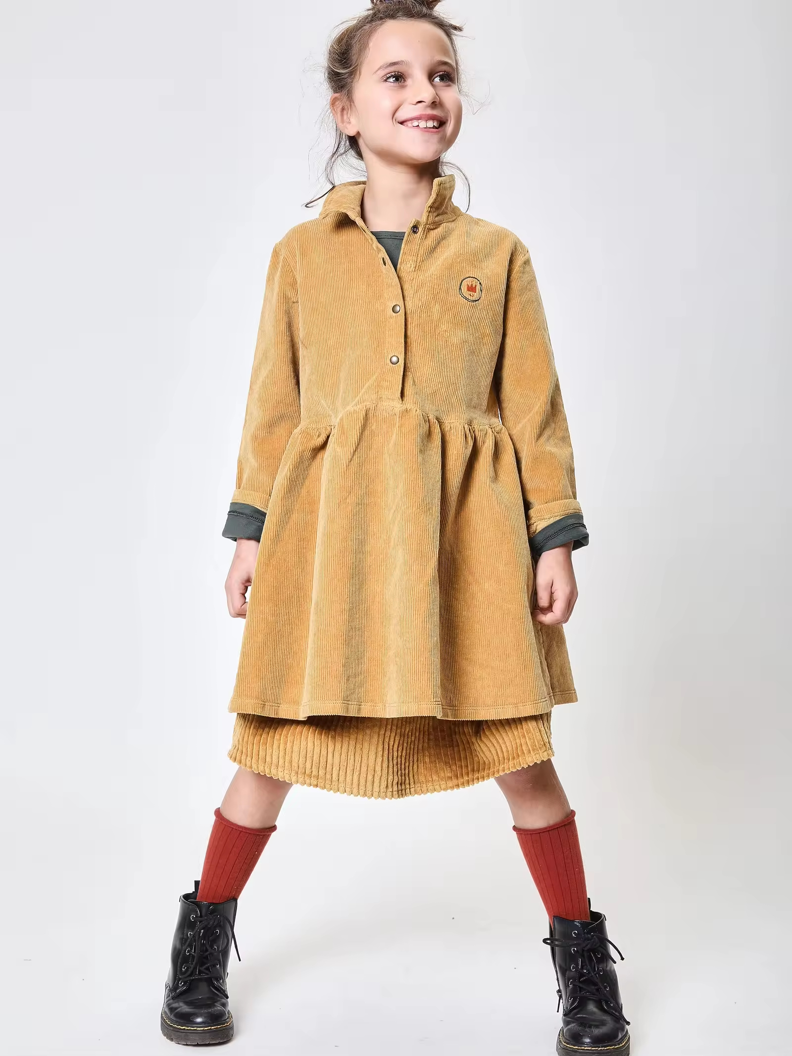 Private Label New Arrive Woven Casual Kids Girls Corduroy Shirt Dress for Teenage Girls