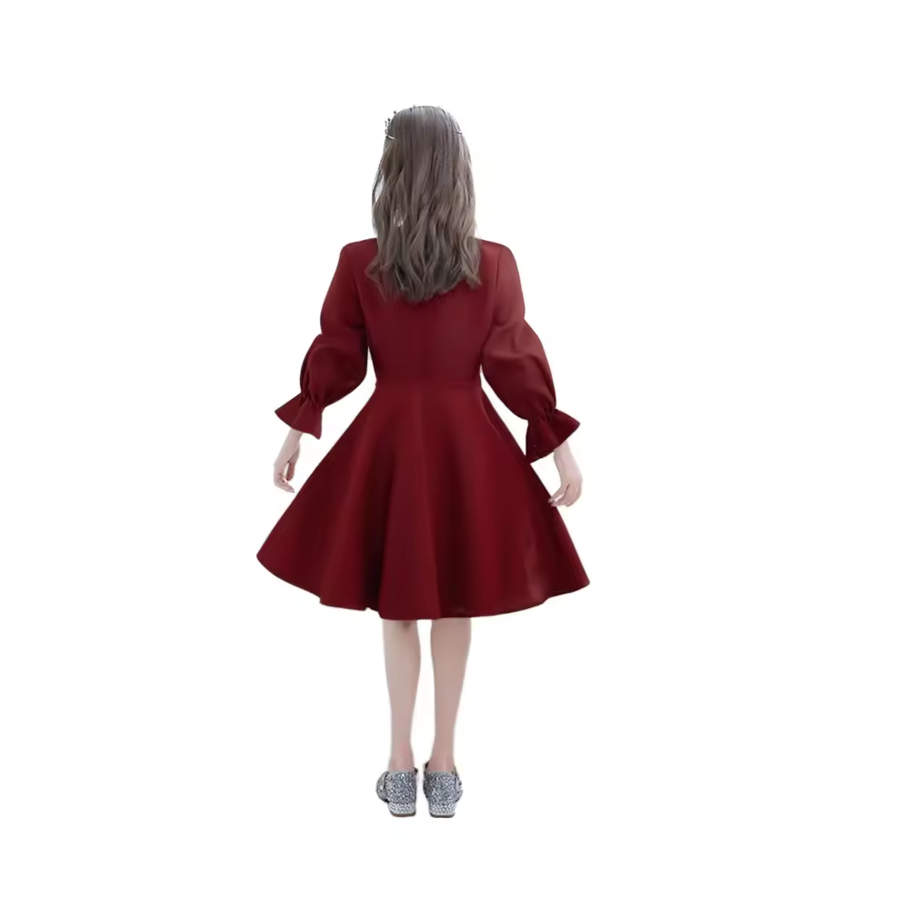 Fashion baby clothes red puff sleeves girl dress with bow baby girls princess party dress