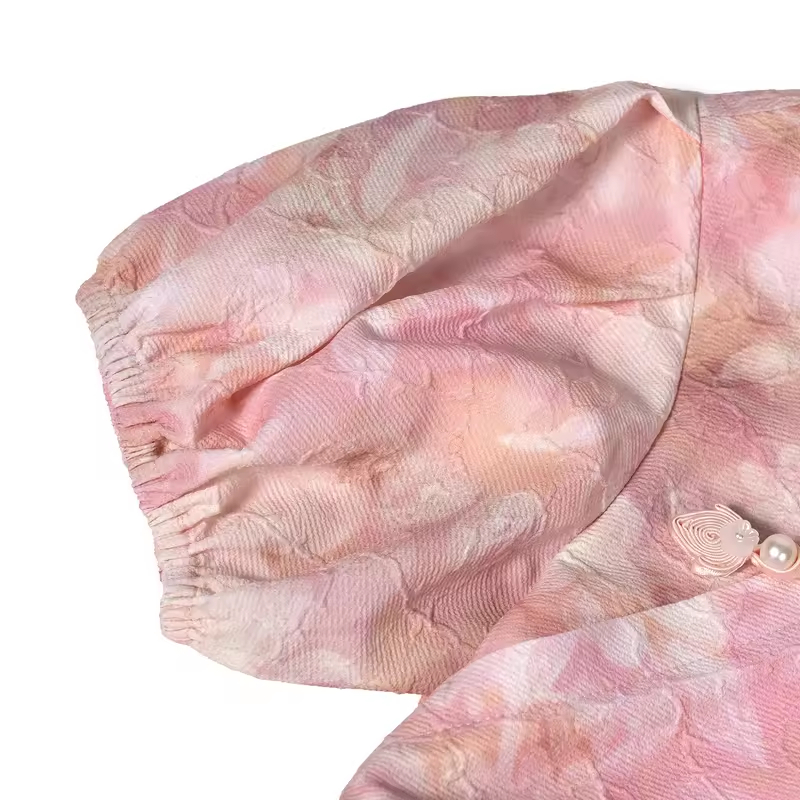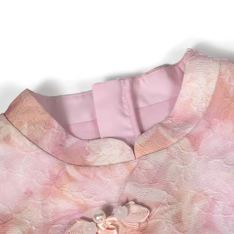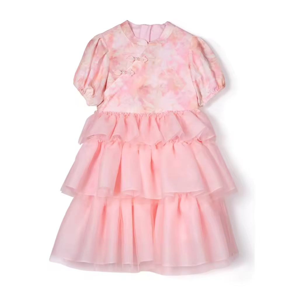 Modern Cute Girls' Summer Dress O-Neck Pink Short Sleeve Woven Fabric Bow Decoration for Vacations Wholesale Children's Clothing