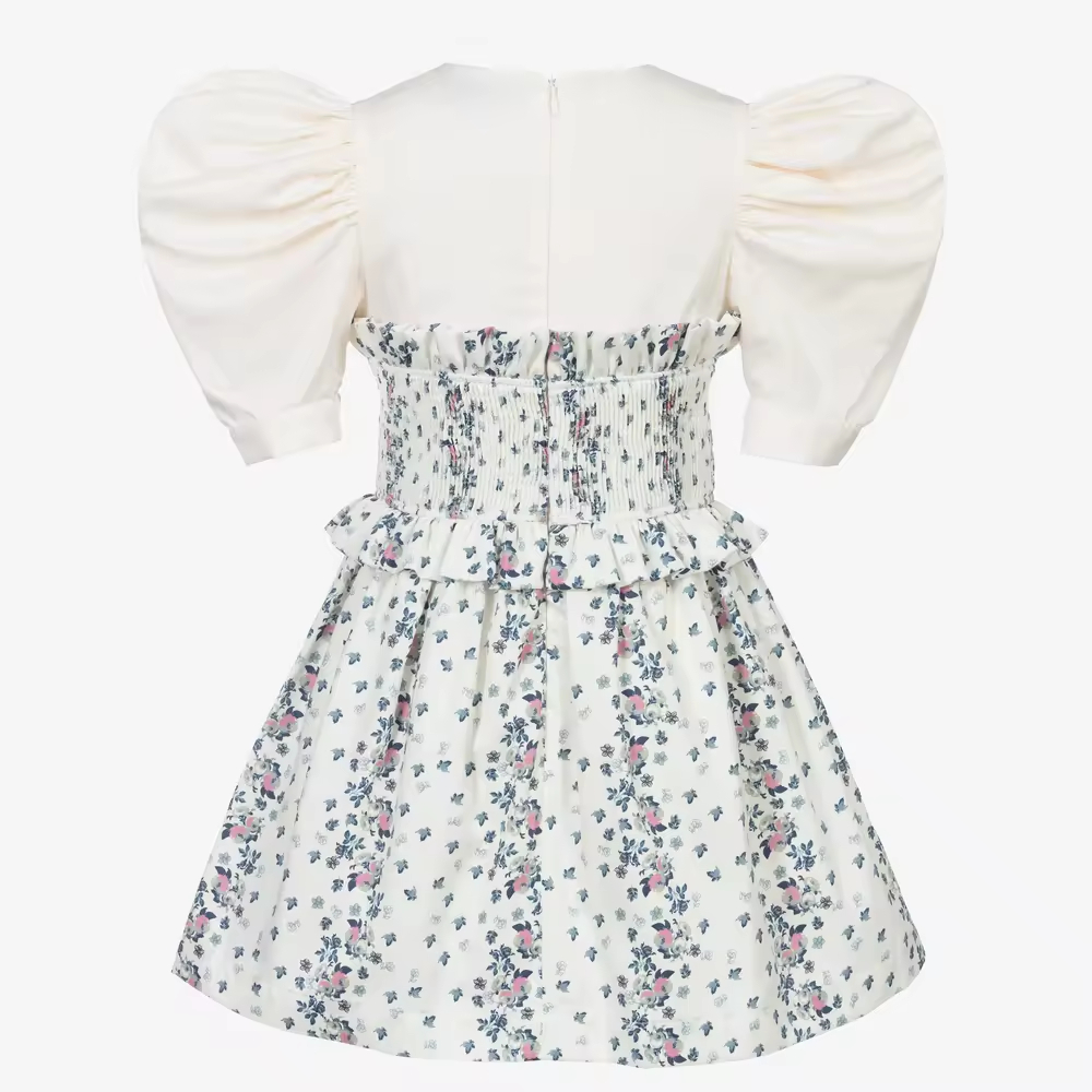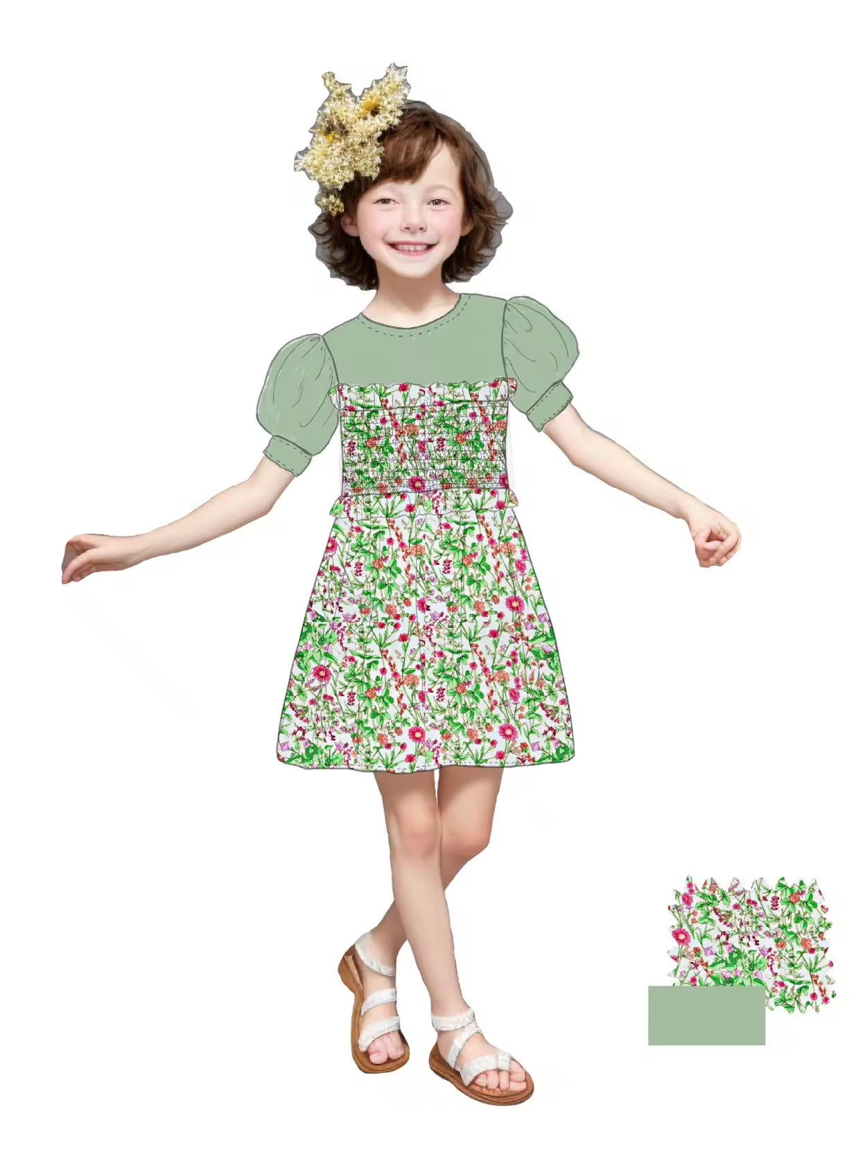 Guangzhou Custom Girls Dresses Floral Print Casual Short Sleeve Summer Smock 2-12 Years Old ODM Baby Girl Clothing