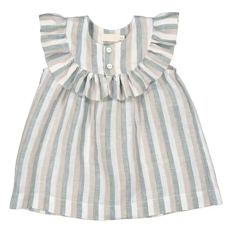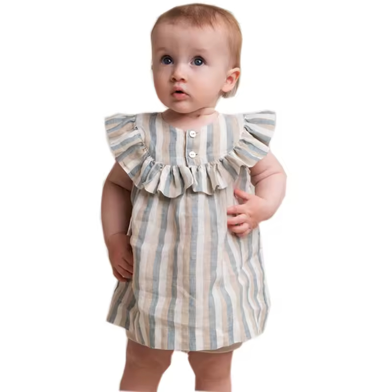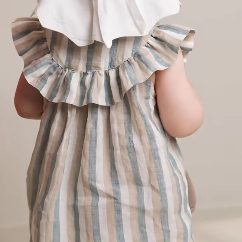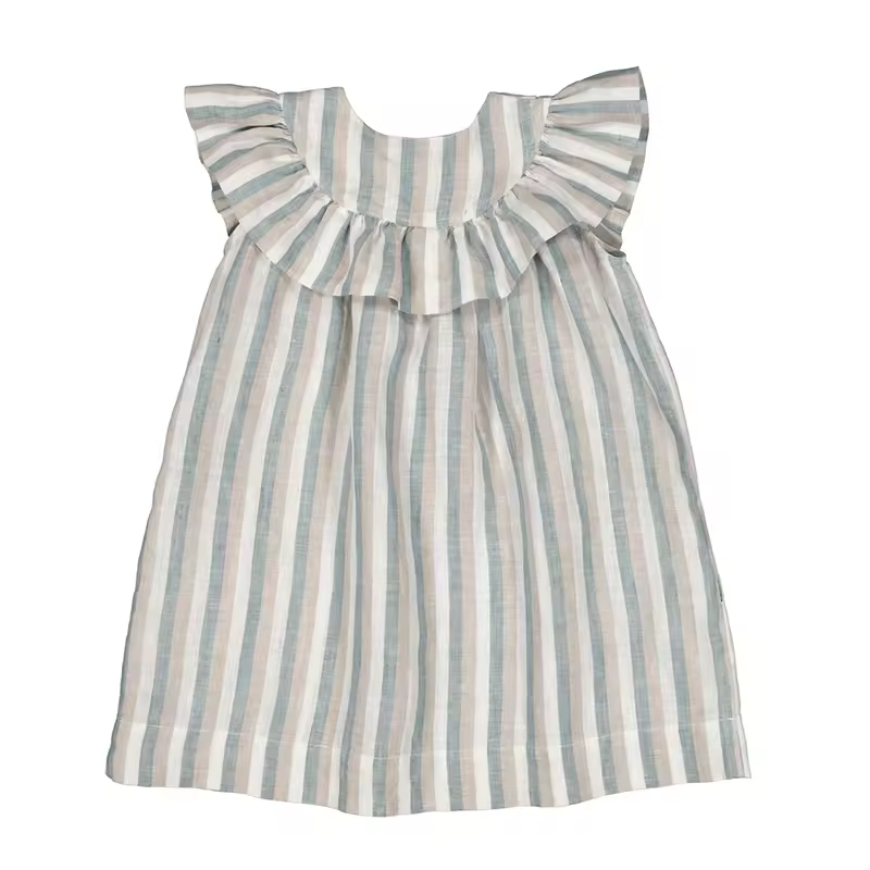 Guangzhou OEM High Quality Baby Linen Dress Sweet Personalized Summer Stripe Clothes for Kids Ruffles Decoration Multiple Colors