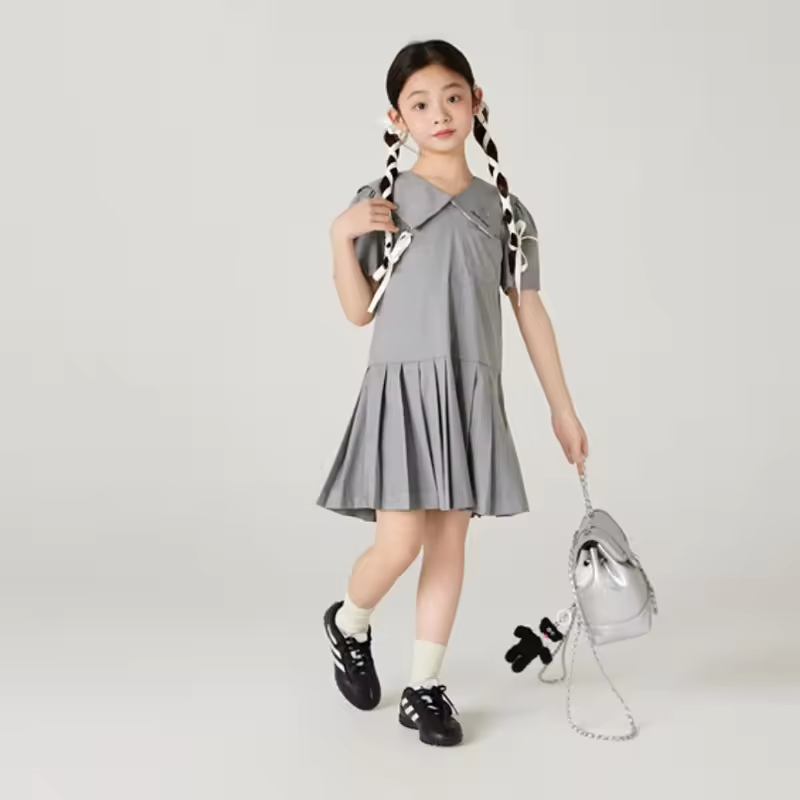 1.Girls Dress in White/black color, quality cotton fabric and a vintage style.