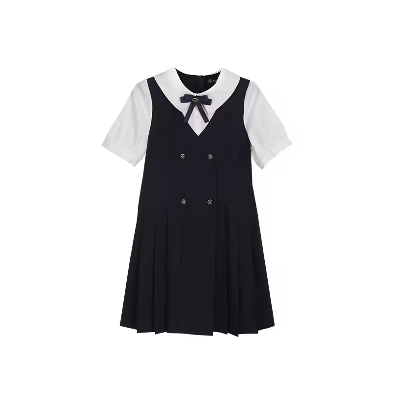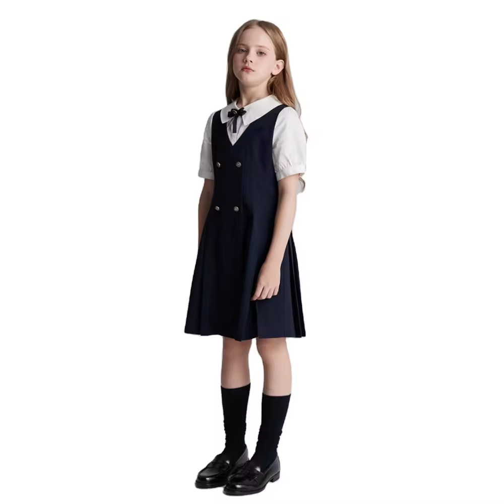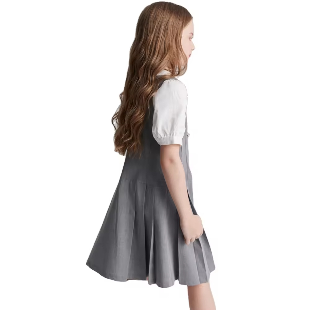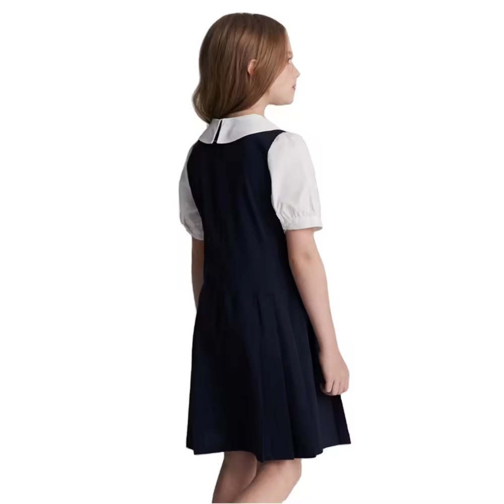 1.Girls Dress in White/black color, quality cotton fabric and a vintage style.