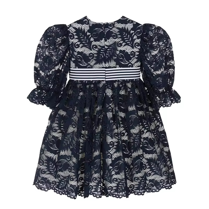 New Design Summer 1-8 Years Baby Girl Bubble Half-Sleeve Dress Fashion Back Lace Evening Dresses