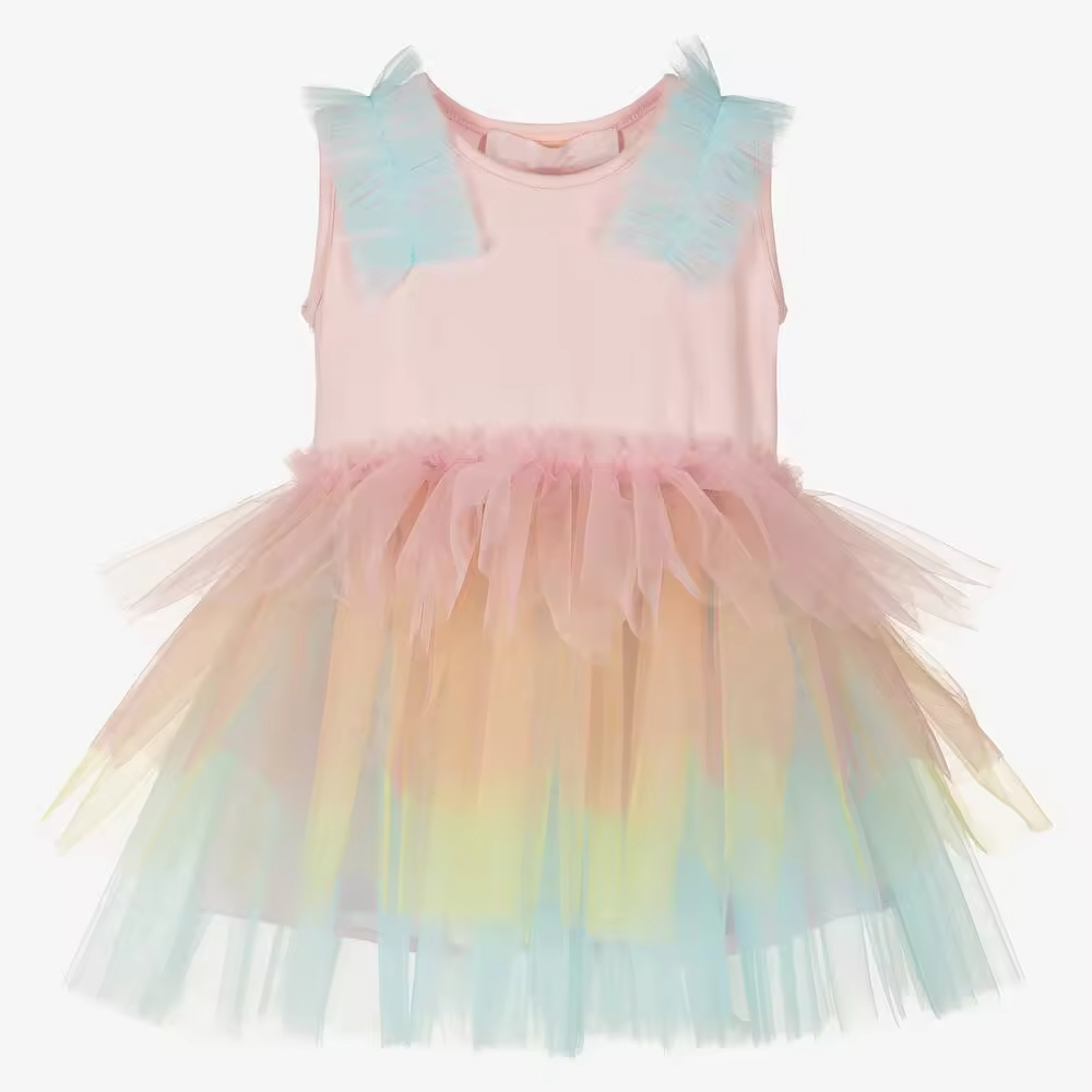 OEM or ODM Baby Girl Tutu Dress With Rainbow Color for 1 Year Toddlers 100% Cotton Summer Apparel