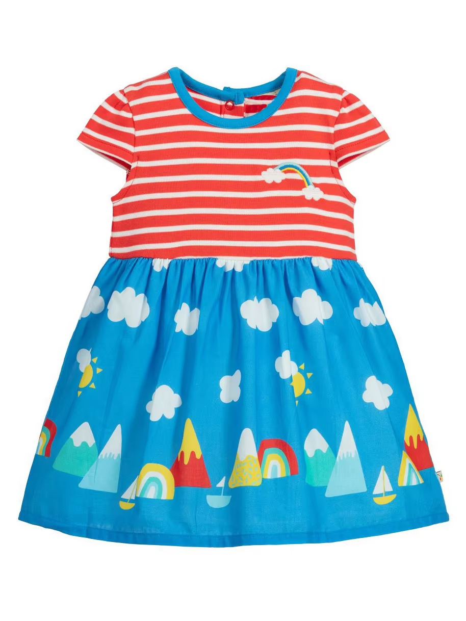Short Sleeve Cotton Dress for Seven-Year-Old Girls Frocks for Children