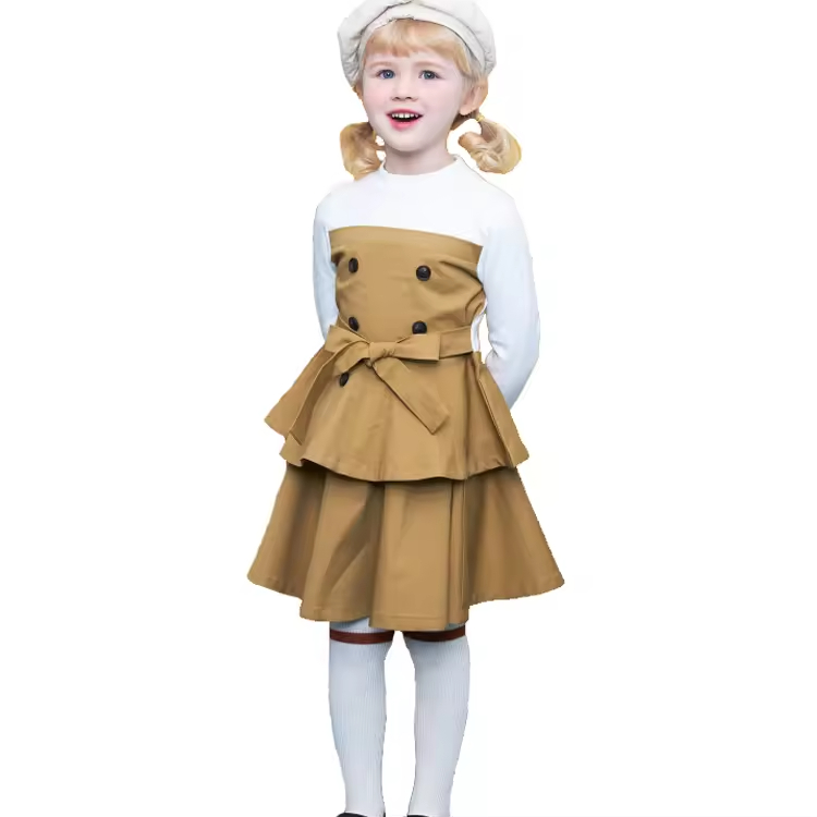 1.Girls Dress in White/black color, quality cotton fabric and a vintage style.