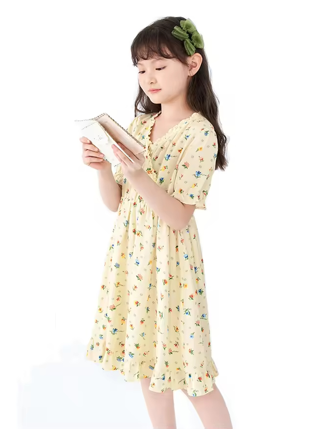 Latest Summer Casual Short Sleeve Kids Cotton Dresses for Girls With Ruffles Decoration for 10 Year Old Teens