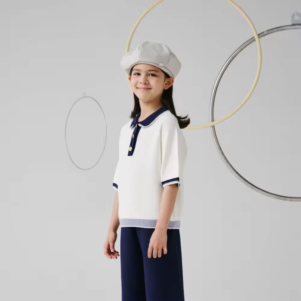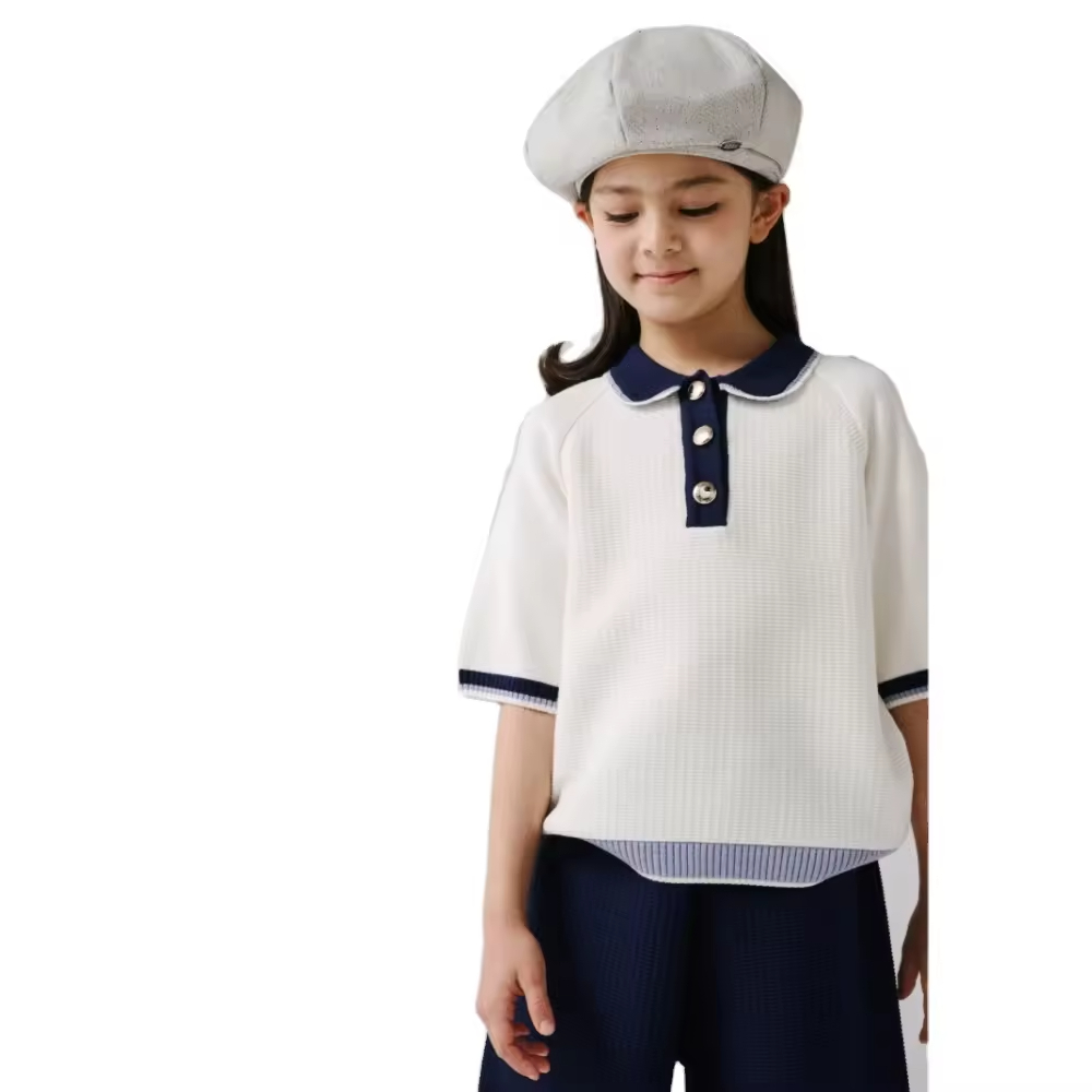 Casual Kids Girls Cotton Polo Shirt O-Neck Woven Tshirts & Child Polo Shirts