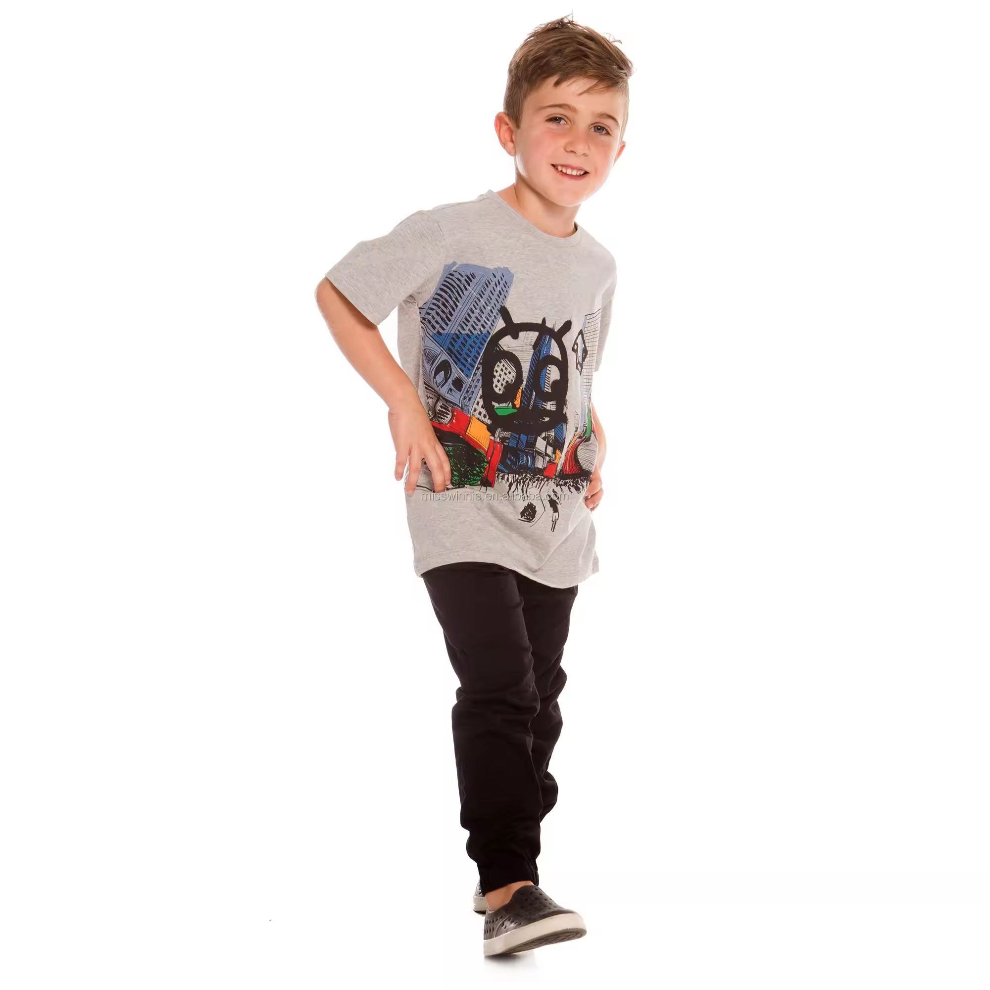 Casual Style Young Boy's Short Sleeve Jersey Fabric Shirt ODM Supply 100% Cotton Print Baby Shirts Children's Clothing Factory