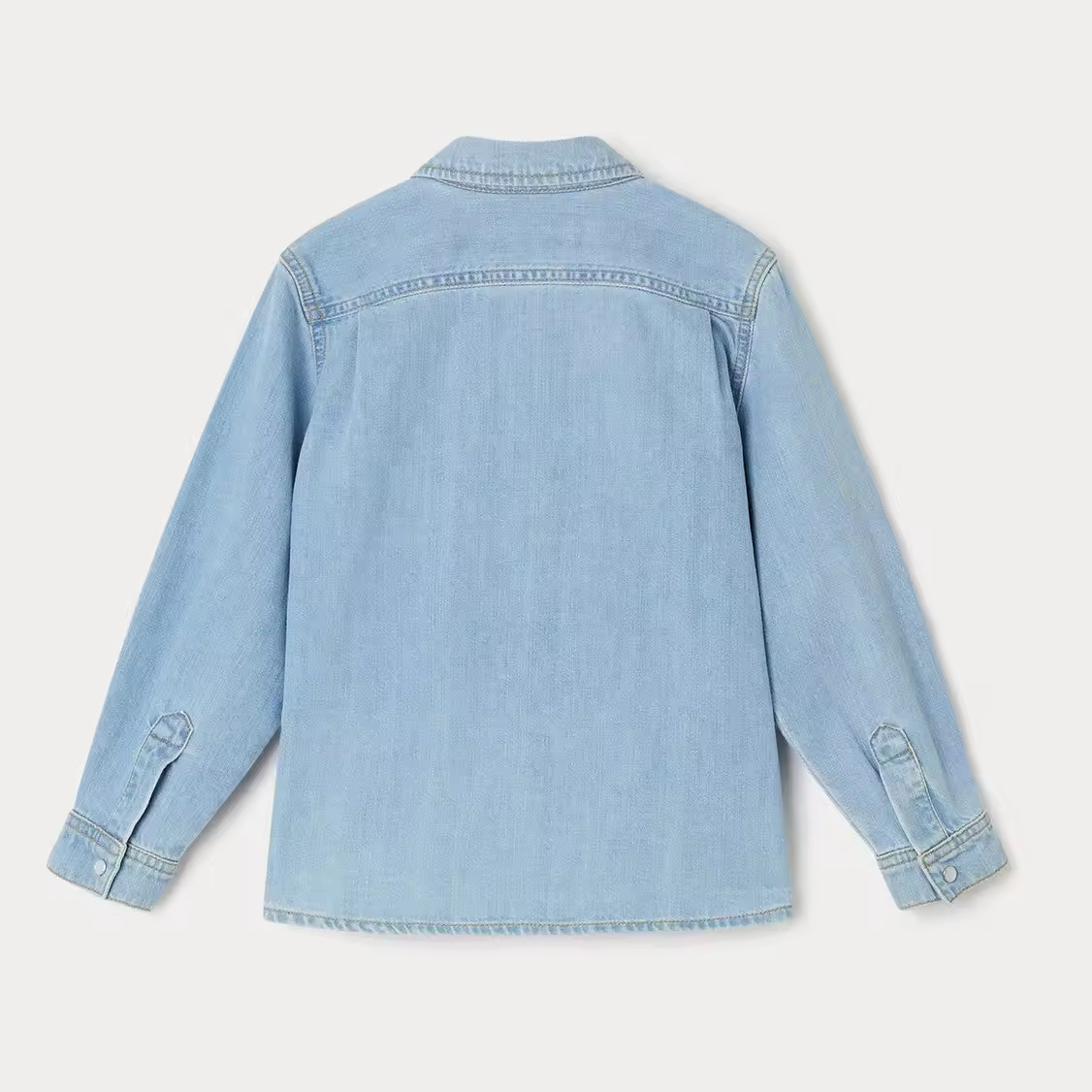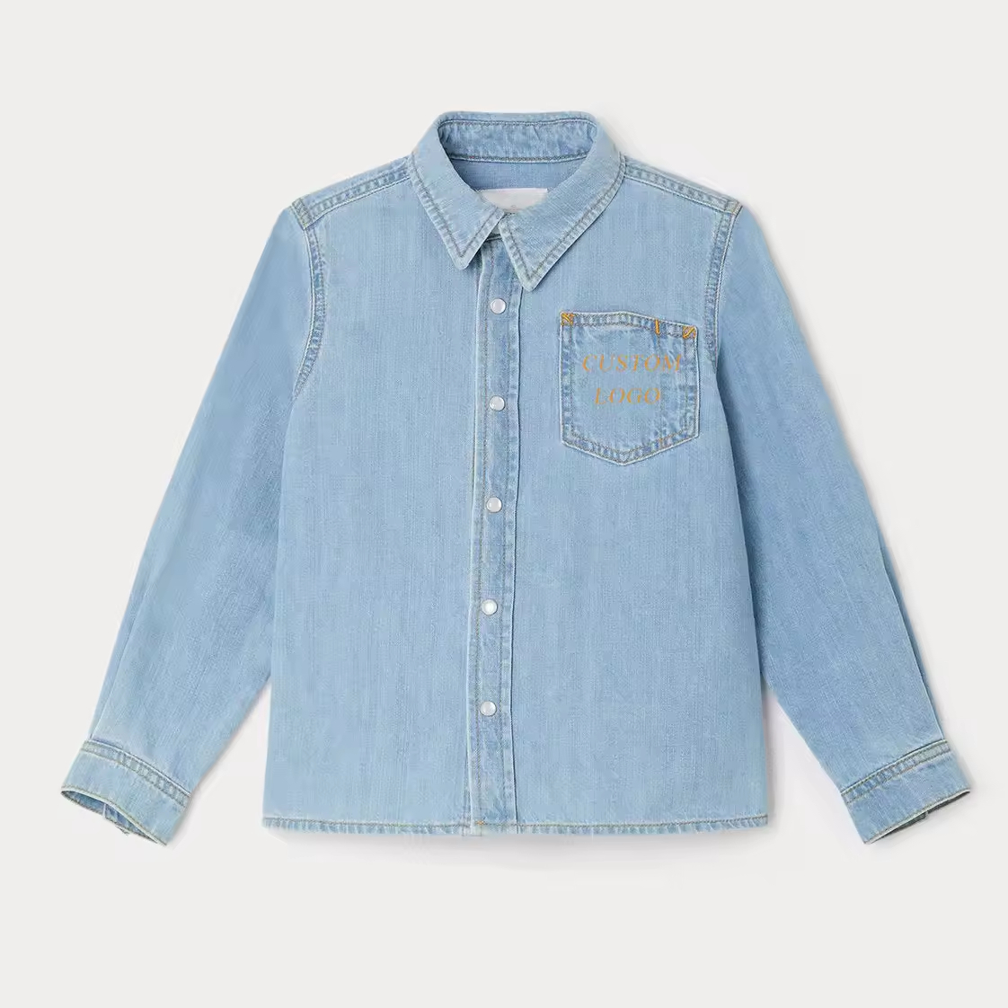 Custom Denim Acid Wash Button Down Children Kids Shirts Boys With Chest Pocket Spring or Autumn Cool Boy Classical Boys Shirts