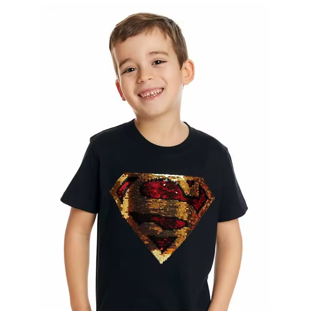 Guangzhou 100% Cotton T-Shirt for Kids Casual O-Neck Boy's Jersey with Sequin Pattern 30 Years Children's Clothing Factory