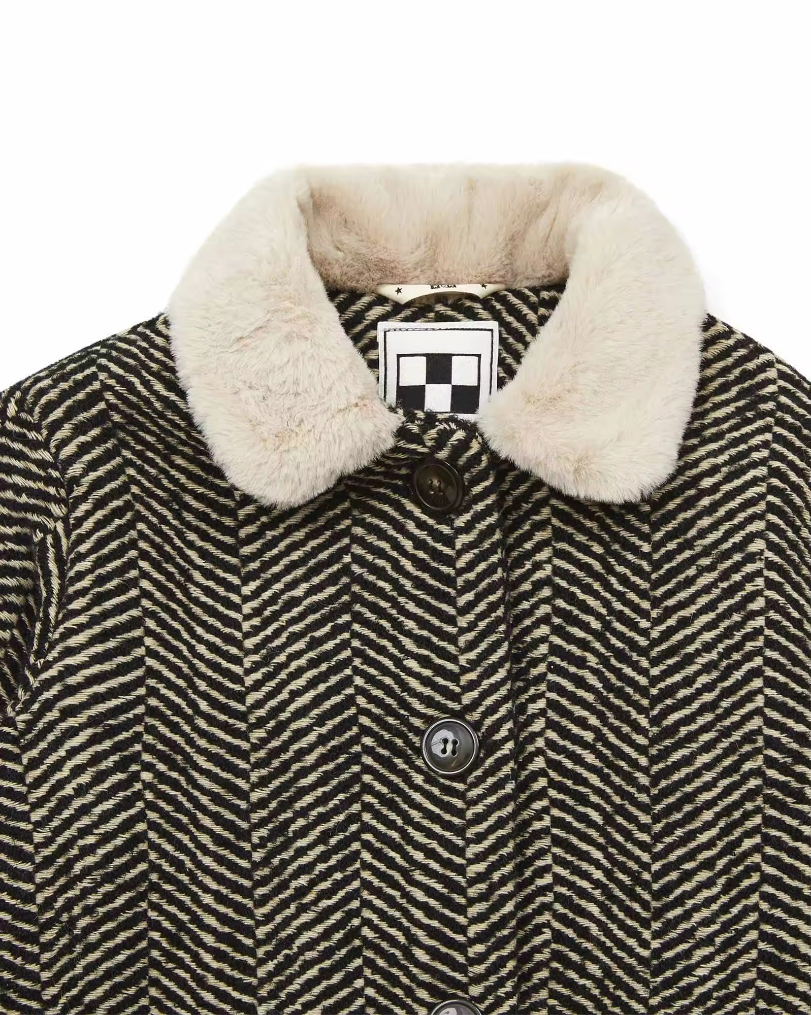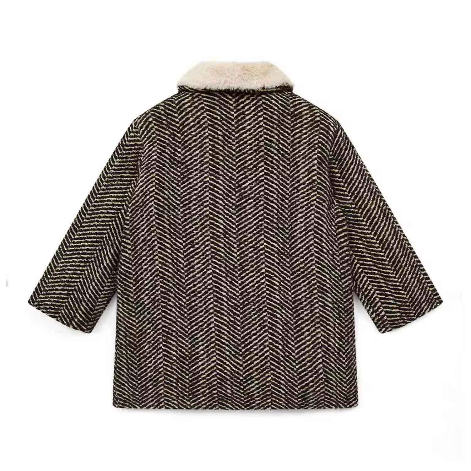 Guangzhou Private Label Fashionable Girls Winter White Long Jacket Coat Removable Rabbit Fur Collar New Tweed for Teenage Girls