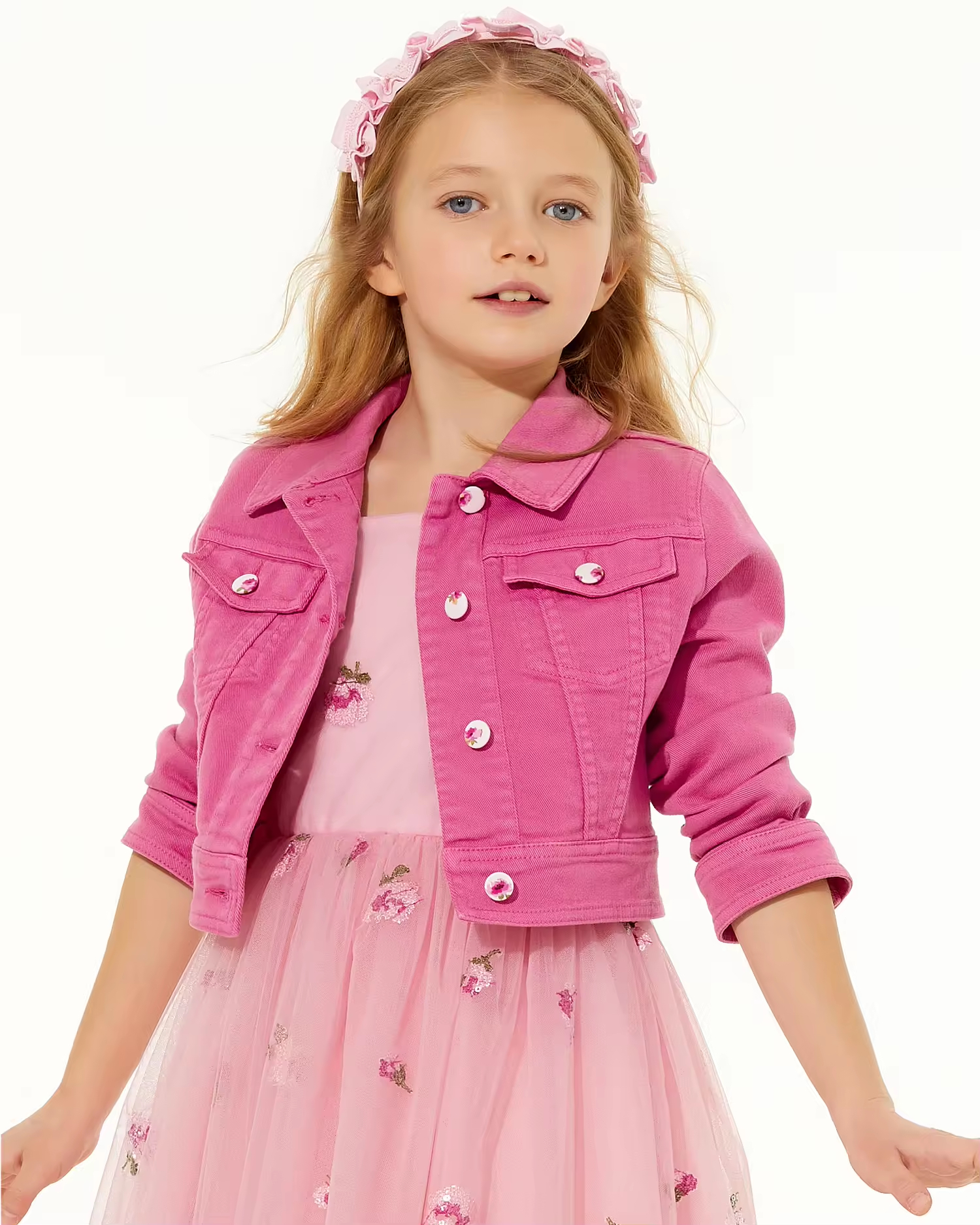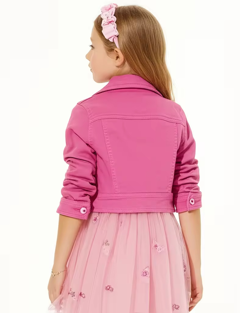 Kids Denim Jacket Pink Pants Matching Set For Girls Boutique Clothing Custom