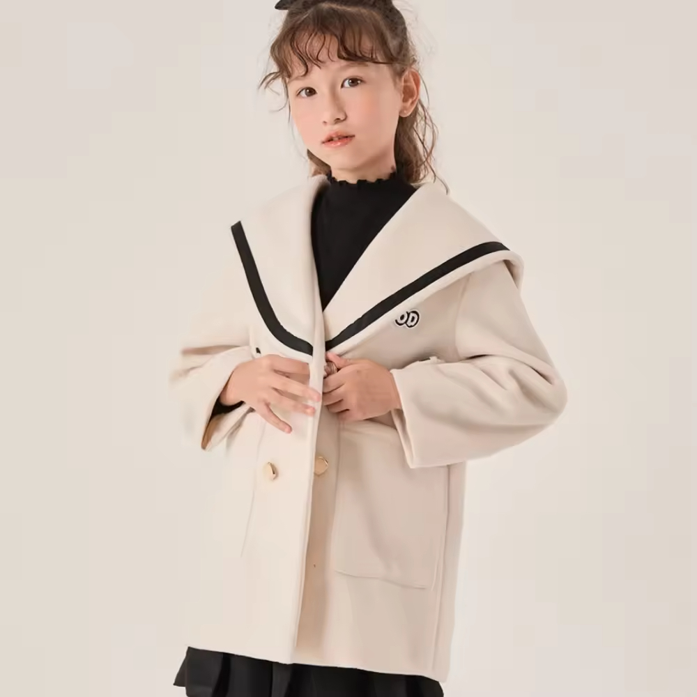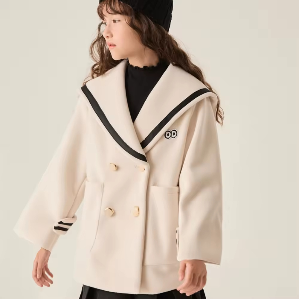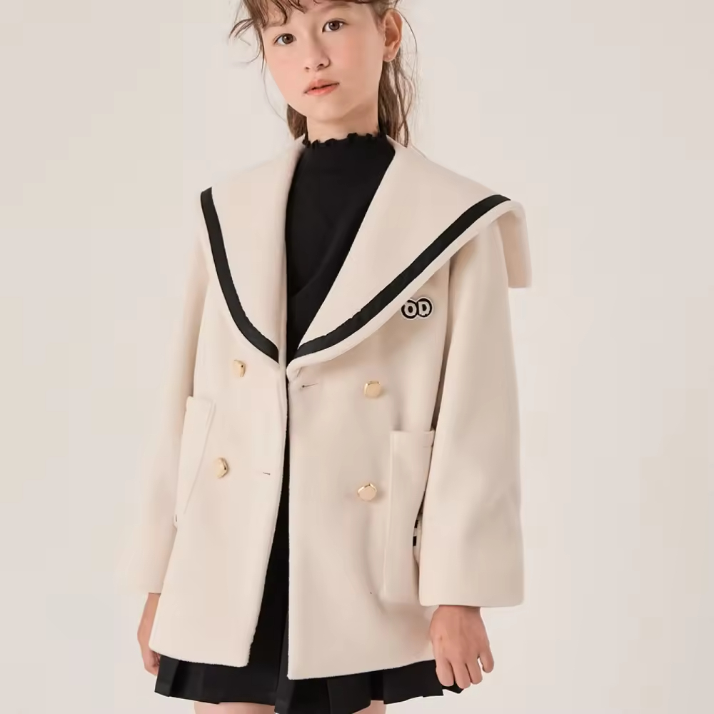 12-Year-Old Girl's Fashionable Solid Style Trench Coat Printed Outerwear Plus Size Clothing