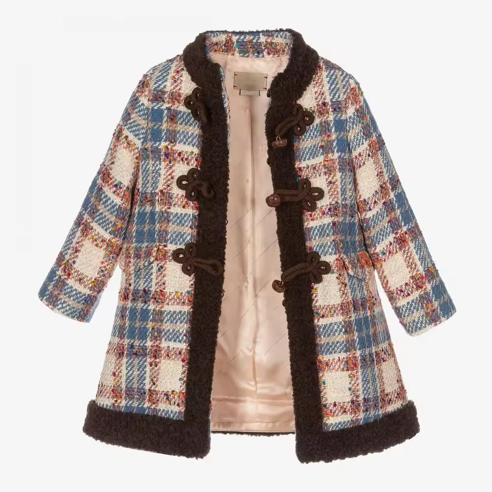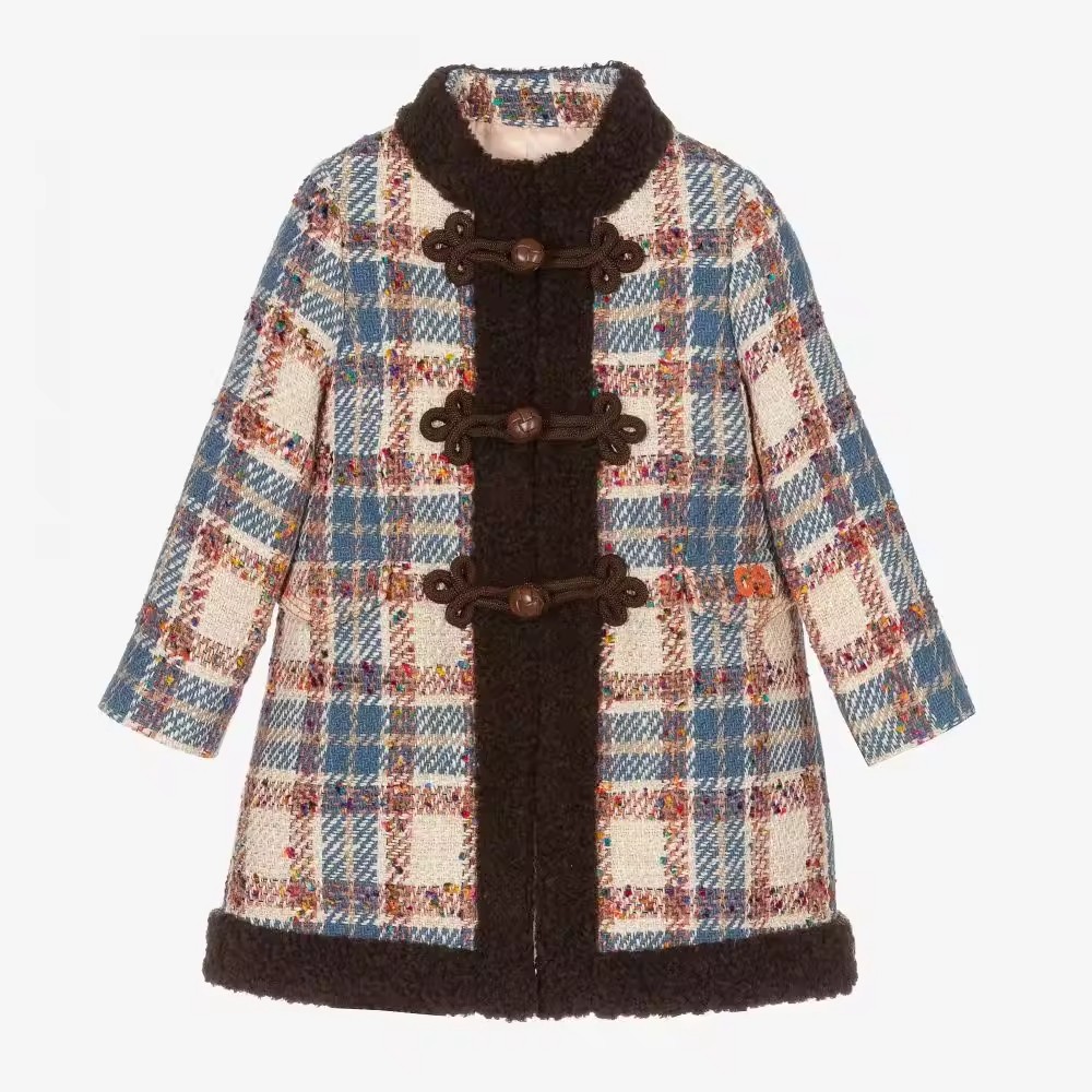 Custom European Style Tweed Wool Kids Coats for Children Winter Fashion Girls Coats&outwears China Manufacturer